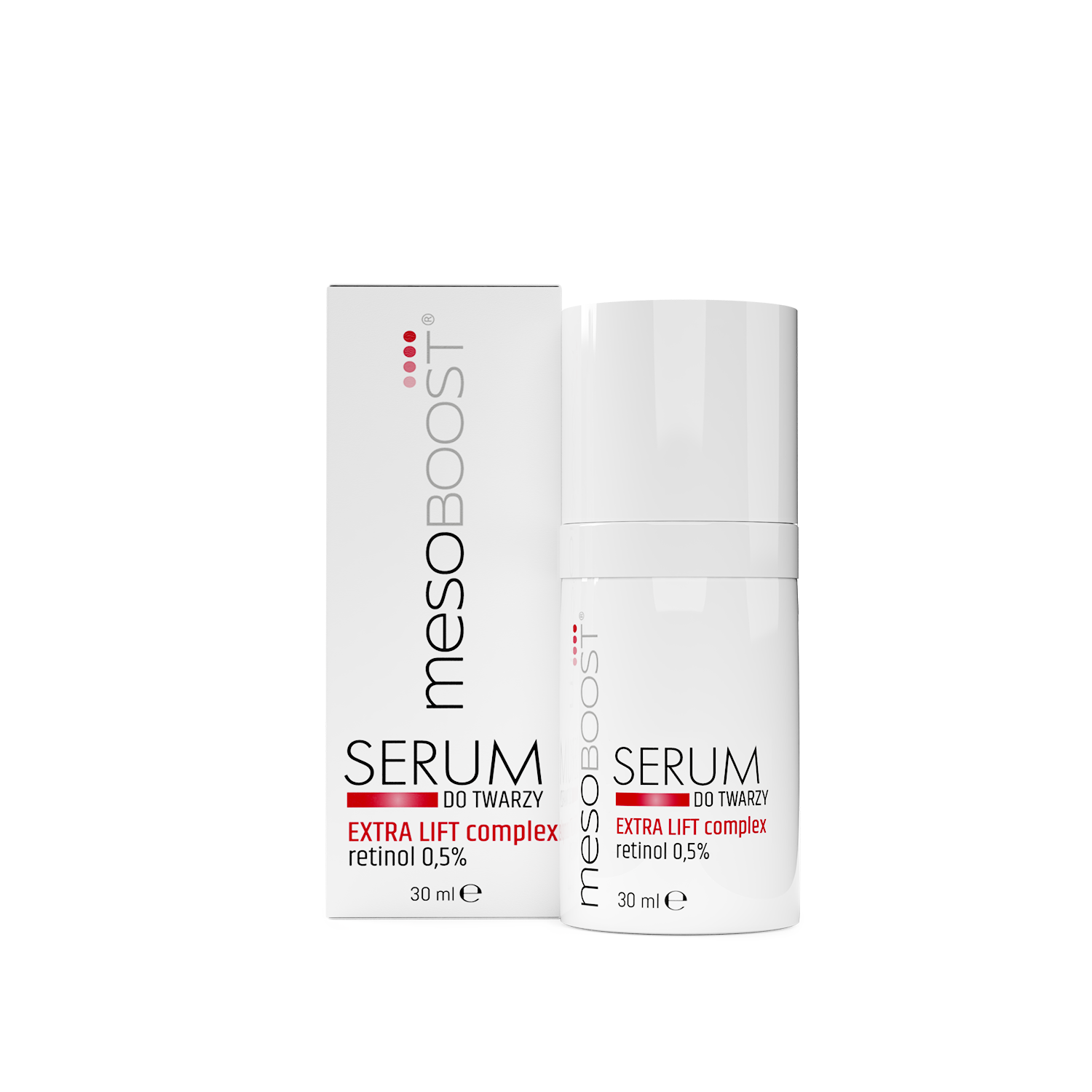 Serum do twarzy mesoBoost EXTRA LIFT complex retinol 0,5% zostało opracowane z myślą o skórze dojrzałej, wymagającej liftingu i odmłodzenia.