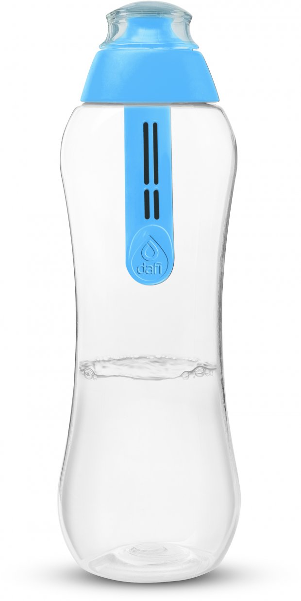 Butelka Dafi wyposażona jest w unikatowy wymienny co miesiąc filtr węglowy (100% naturalne medium filtrujące wytwarzane z łupin orzecha kokosowego). Filtr usuwa z wody kranowej nieprzyjemny smak i zapach chloru. Pozostawia niezmienioną ilość minerałów naturalnie w niej występujących (głównie wapnia i magnezu), dzięki czemu woda zachowuje cenne dla zdrowia pierwiastki. Wykonana jest z przezroczystego, wytrzymałego tworzywa. Jest całkowicie pozbawiona szkodliwego Bisfenolu A i dopuszczona do kontaktu z wodą na podstawie odpowiednich atestów. Dzięki korzystnym gabarytom i ergonomicznej budowie, możesz mieć ją zawsze przy sobie nie martwiąc się o konieczność kupowania wody w jednorazowych opakowaniach.