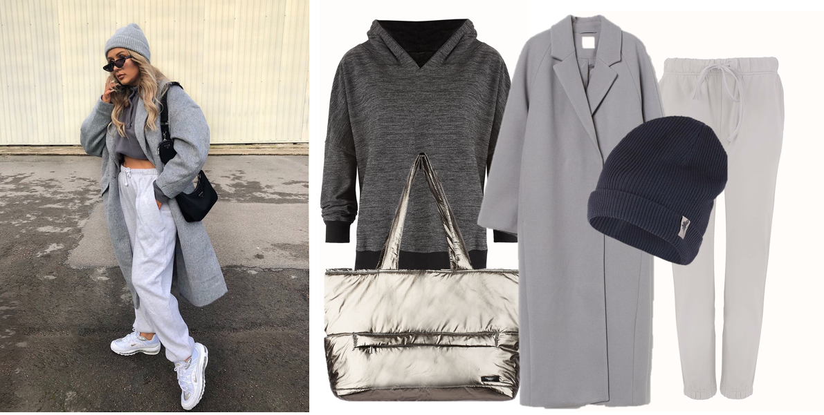 Bluza by Insomnia 139 zł, torba by Insomnia 119,99 zł, spodnie by Insomnia 132 zł, płaszcz H&M 199 zł, czapka by Insomnia 89 zł