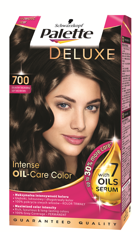Dzięki nowej linii Palette Deluxe włosy są pielęgnowane w wyjątkowy sposób już w trakcie koloryzacji. Składniki odżywcze i skoncentrowane pigmenty koloru znajdują się w odżywczym kremie koloryzującym Palette Deluxe. Zapewnia on długo utrzymujący się kolor i doskonałe pokrycie siwych włosów. Odżywka po koloryzacji Serum z 7 olejkami dodatkowo zadba o kondycję włosów po koloryzacji. Pozostawi włosy miękkie, łatwe do rozczesywania oraz niezwykle przyjemne w dotyku. W składzie serum są: olejek marula, agranowy, sezamowy, migdałowy, z oliwy z oliwek, z pestek moreli oraz makadamia.