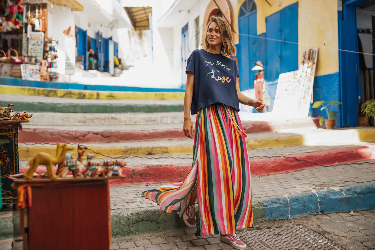 Historia inspirowana marokańskimi zachodami słońca nad tętniącym życiem, pełnym ekscytujących bodźców miastem. Niebanalnie połączenie ognistego odcienia pomarańczy, głębokiego granatu i delikatnego błękitu z motywem przewodnim LOVE, zaprojektowanym po wizycie w muzeum Yves Saint Laurent w Marrakeszu.