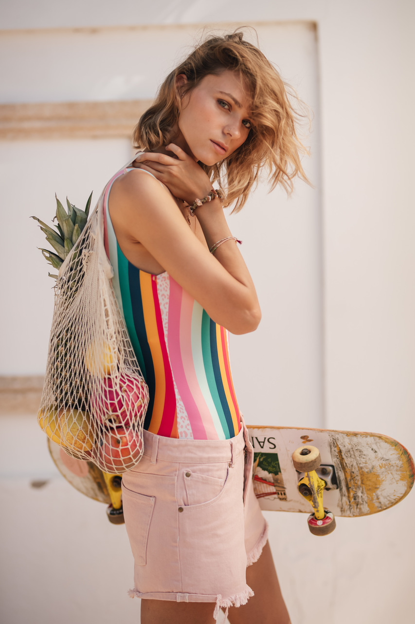 Historia inspirowana podróżą po piaszczystych brzegach oceanu i andaluzyjskimi zachodami słońca. Modele w odcieniu pudrowego różu i niebieskiego przełamane zostały delikatnym printem nawiązującym do tego, co kochamy najbardziej – słońca, plam i fal.
