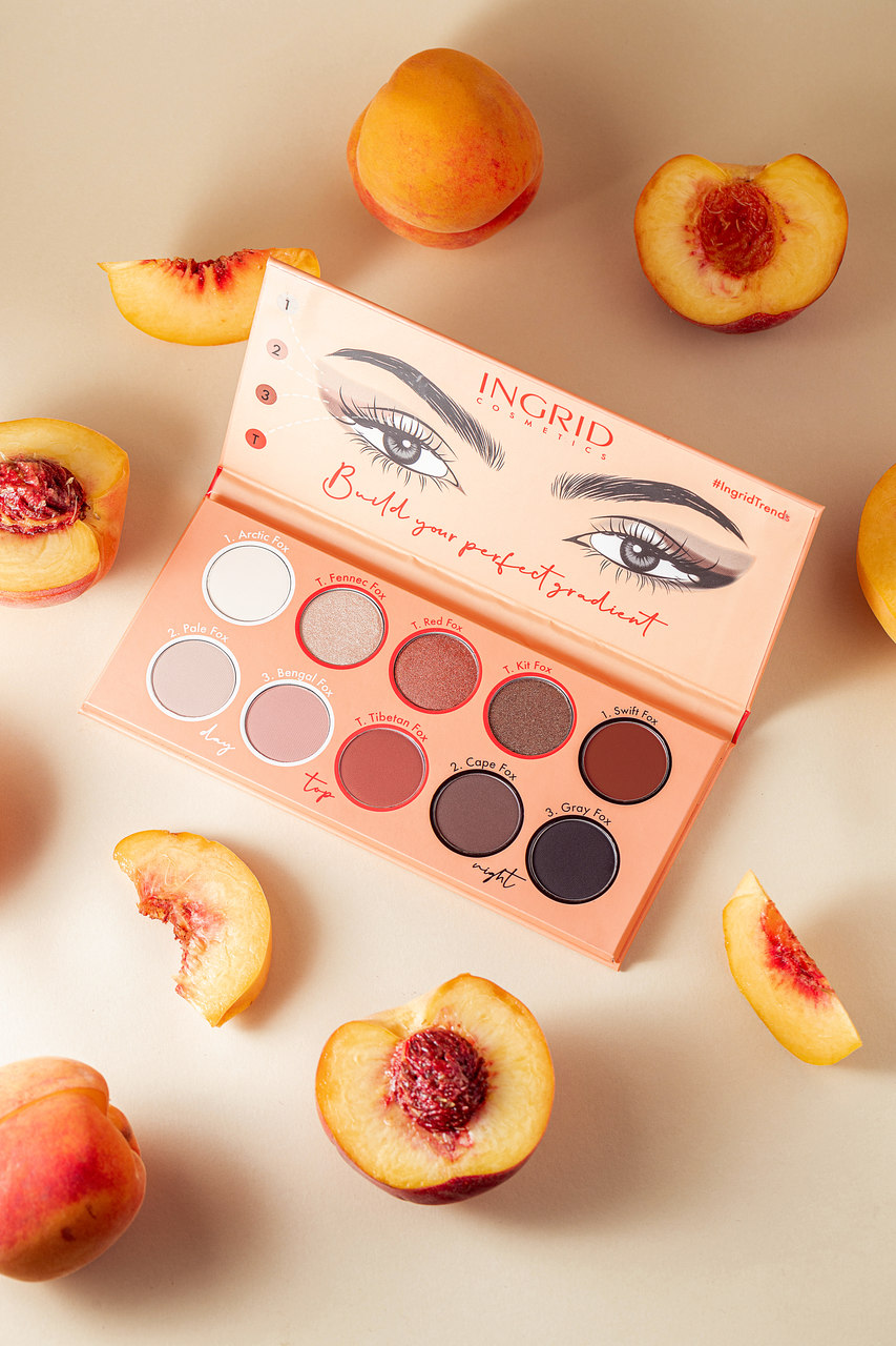 Foxy Eyes czyli najgorętszy trend ostatnich miesięcy, to technika makijażu, w której chodzi o to, by wyciągnąć zewnętrzny kącik oka do góry i nadać spojrzeniu prawdziwie lisie spojrzenie. Gwiazdy takie jak Bella Hadid lub Kendall Jenner pokochały ten look! Dzięki niemu optycznie powiększa się powieka, a brwi sprawiają wrażenie bardziej uniesionych. Oczy stają się prawdziwym magnesem przywodzącym na myśl zwierzęcą dzikość, przyciągają i intrygują. Paletka Foxy Eyes od Ingrid Cosmetics zawiera wszystkie niezbędne elementy konieczne do wykonania tego typu makijażu, a wraz z nimi instrukcję do wykonania aż dwóch różnych makijaży w tej stylistyce. Jeden z nich jest makijażem dziennym w stonowanej kolorystyce, natomiast drugi świetnie się sprawdzi na wieczór, na wyjście do klubu, lub na długo wyczekiwaną randkę. Kolorystyka została utrzymana w barwach ziemi, są tam zarówno ciepłe, jak i zimne odcienie brązów, beży oraz wpadające w pomarańcz róże. W paletce znajdziemy zarówno matowe, jak i błyszczące cienie, dzięki którym możemy wymodelować oko lub podkreślić np. łuk brwiowy. Taki zestaw z odrobiną tuszu do rzęs i pomadką w ulubionym kolorze z pewnością sprawią, że poczujesz się jak jedna z topowych gwiazd i zawładniesz spojrzeniem każdej napotkanej osoby. Cena 49,90 zł