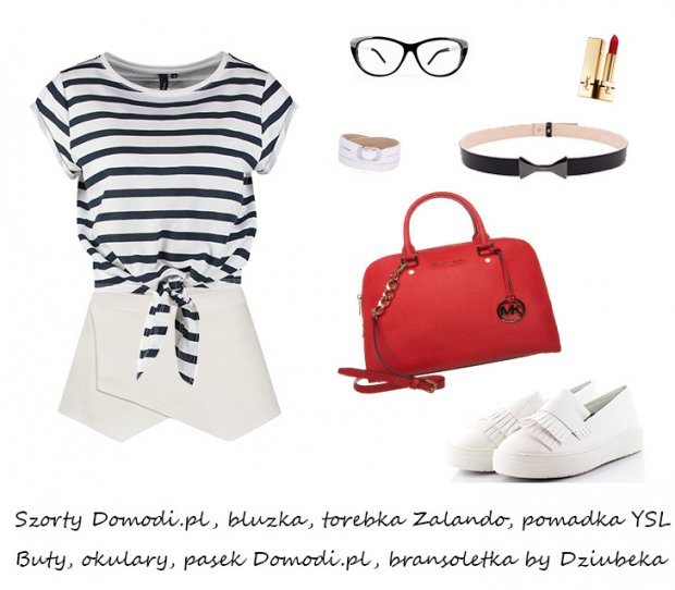 Nasza druga propozycja jest dla osób, które uwielbiają też styl marynarski. Połączenie pasków z czerwienią i bielą sprawi, że będziesz wyglądała modnie, ale też elegancko. Francuzki słyną z łączenia wygody ze stylem glamour, dlatego śmiało możesz łączyć by QS”> eleganckie