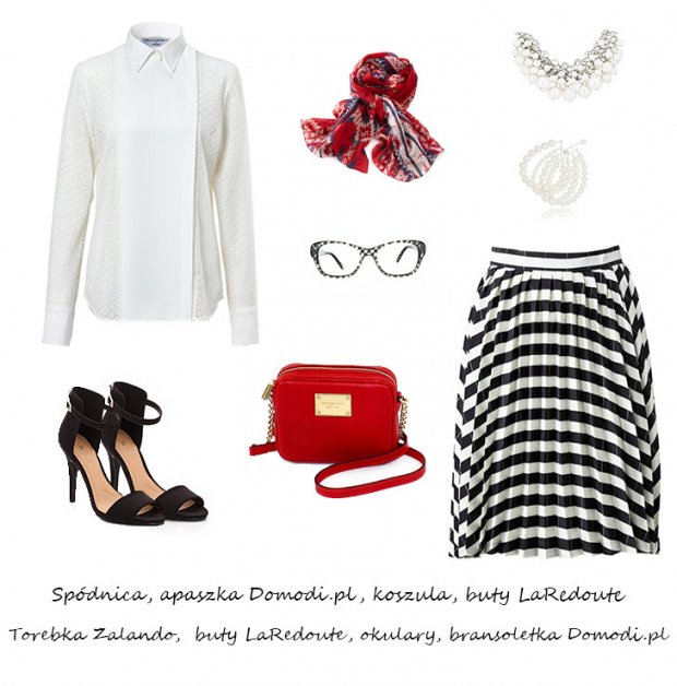 Odcienie granatu, biel i marynarskie paski w połączeniu z czerwienią, to zdecydowanie najbardziej stylowy, francuski zestaw. Prosty, a jednak spektakularny. Nasza ostatnia propozycja to look na przykład do pracy. Modna elegantka! To zawsze się podoba!