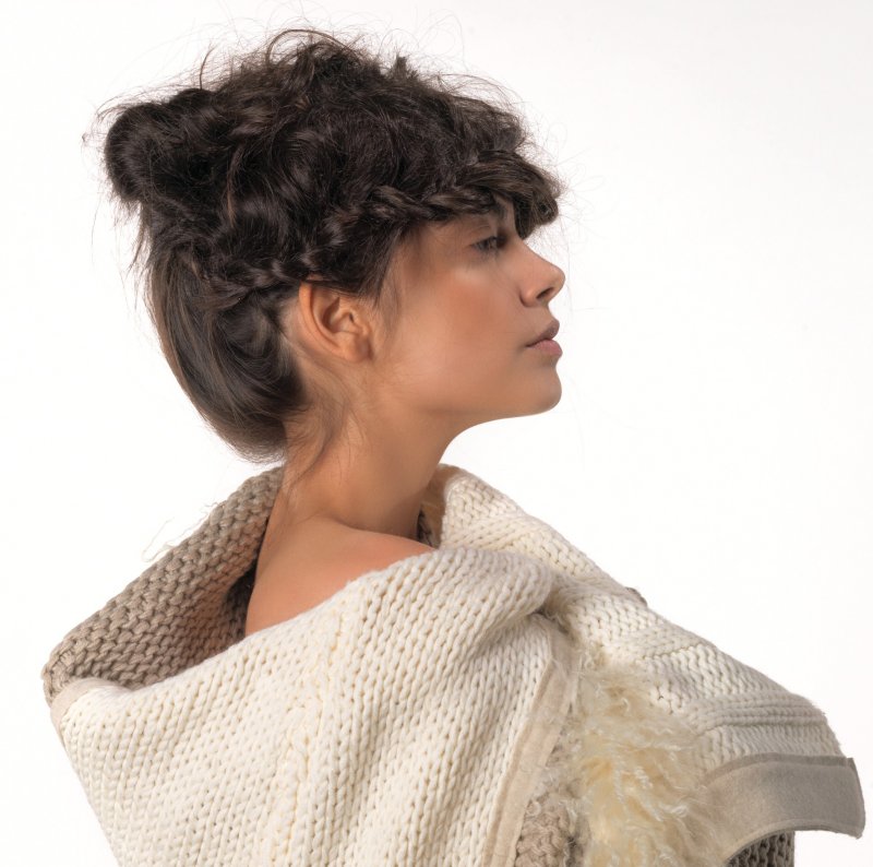 Włosy gładko zaczesane i jednocześnie pełne objętości. Upięcie to nowoczesny trend. Stworzona sztuczna i nieco postrzępioną grzywka nadaje uczesaniu charakteru i nieładu, który będzie obowiązkowym elementem stylistyki w 2014 roku. Jeśli masz ochotę na takie uczesanie użyj najpierw magicznego sprayu z linii Liding Care Lovely Day, który sprawi, że włosy staną się miękkie i łatwe w rozczesywaniu. Następnie rozdziel włosy w poprzek głowy, od ucha do ucha. Z oddzielonych włosów upleć biegnący poziomo, wzdłuż głowy mały francuski warkocz. Na wysokości ucha podepnij go spinką. Pozostałe włosy, zaczynając od przodu, tapirujemy na całej długości. Przenosimy je na przód głowy. Wykorzystując mały warkocz i podtapirowaną część włosów tworzymy efekt grzywki. Następnie włosy z tyłu głowy zaczesujemy na jedną stronę nadając im objętości i podpinamy je spinkami. Na koniec fryzurę utrwalamy lakierem AND Vamp Spray 44.