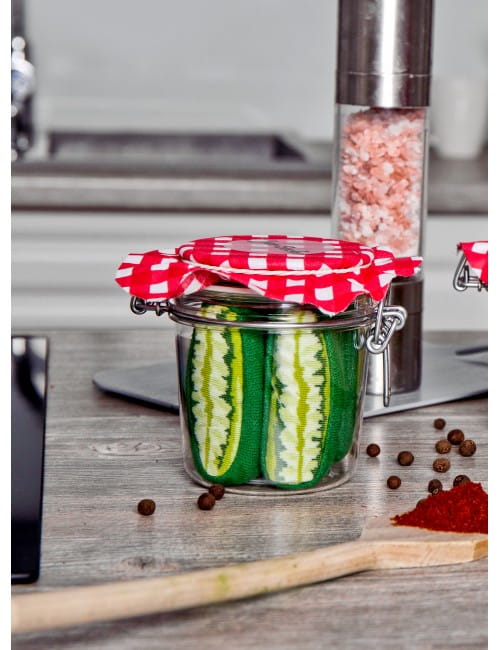 Jar Socks, ogórki w słoiku, czyli 2 pary ogórkowych zielonych skarpet, cena 49,99 zł.