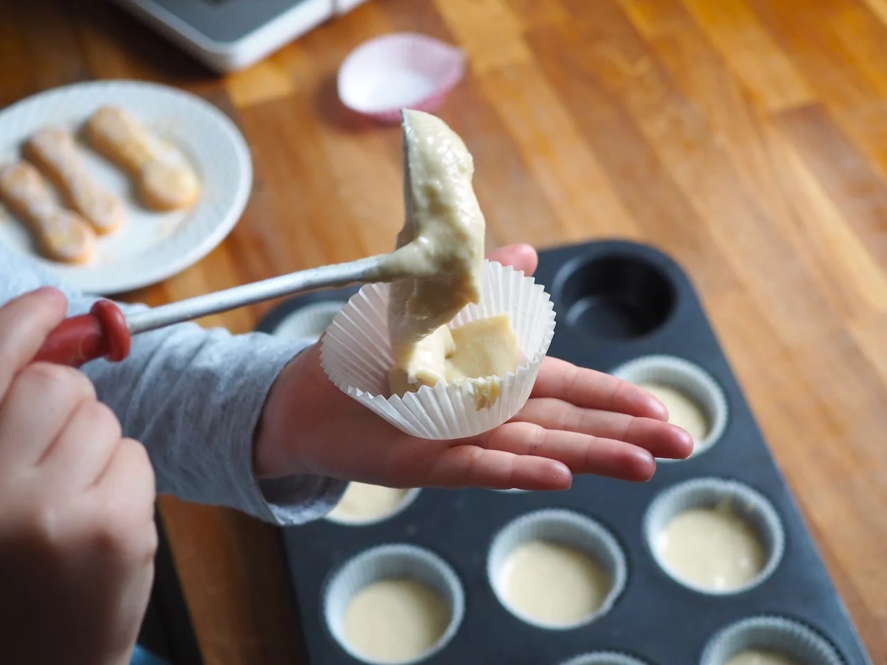 - Całość dokładnie mieszamy, a następnie do papierowych foremek wkładamy po łyżce przygotowanej masy. Po środku umieszczamy kostkę czekolady, przykrywamy kolejną porcją ciasta i pieczemy 25-30 minut w temperaturze 180°C.