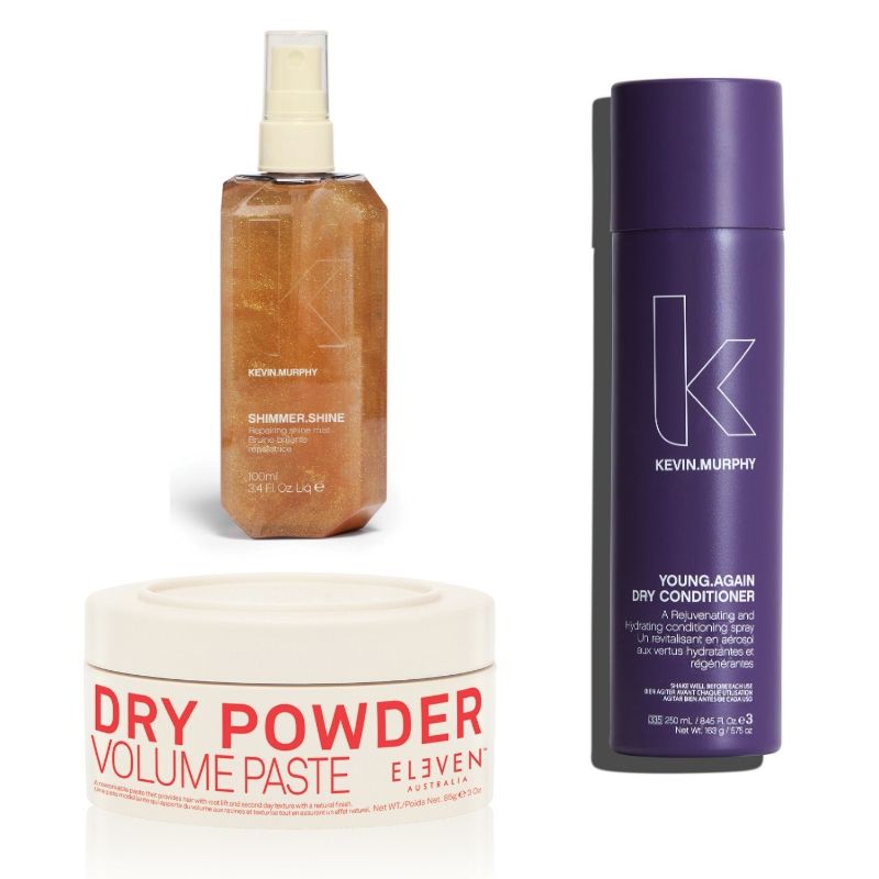 Eleven Australia, Dry Powder Volume Paste, 79 zł, Kevin.Murphy, Young.Again Dry Conditioner, 134 zł, Kevin.Murphy, Shimmer.Shine, 127 zł