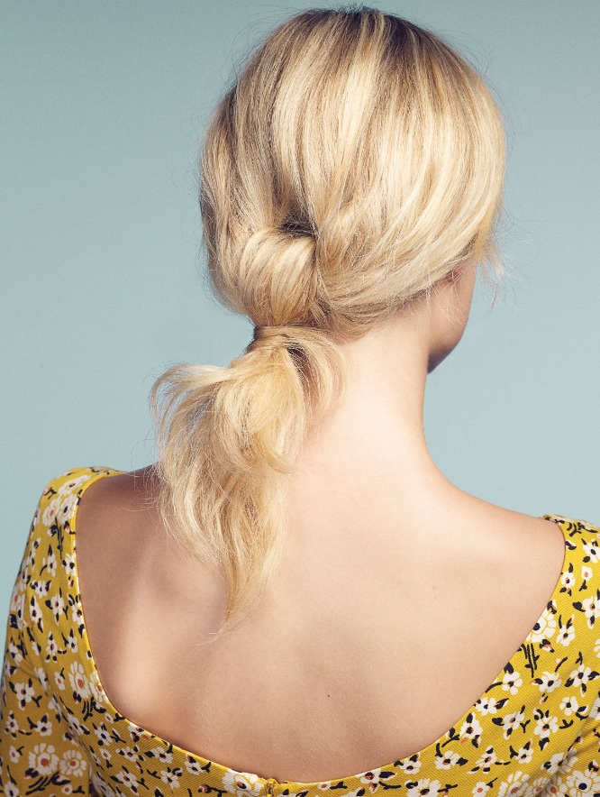 Wbrew pozorom imprezowa fryzura dla półdługich włosów wcale nie musi być nudna. Jeśli jesteś posiadaczką cienkich włosów postaw na niebanalne upięcie. Na wilgotne włosy od nasady aż po same końce Anti.Gravity Spray i wysusz włosy. Złap włosy luźno w niski kucyk, przewróć go przez włosy i zepnij wsuwką pod włosami dla utrzymania. Wydziel pasmo z kucyka, którym zakryjesz gumkę na włosach, i skręć dookoła podstawy kucyka. Przy użyciu grzebienia ze szpikulcem rozluźnij fryzurę. Kucyk wykończ lakierem Caviar Perfect Texture aby dodać fryzurze tekstury oraz objętości.