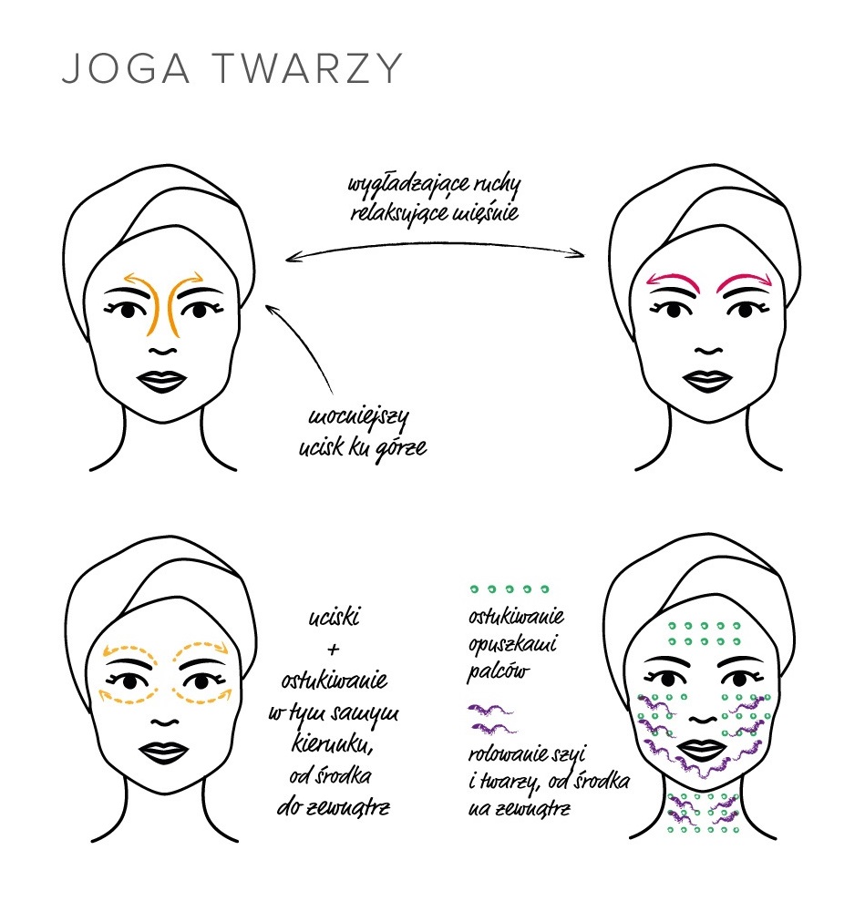 Regularnie wykonywana gimnastyka mięśni twarzy może zapewnić starzejącej się skórze naturalny lifting, sprawdzi się też jako zabieg prewencyjny. Jak to możliwe? Stymulacja mięśni odpowiedzialnych za zwiotczenie skóry, praca na tkankach skóry i pobudzenie mikrokrążenia są w stanie kompleksowo oddziaływać na tkankę łączną, naczynia krwionośne i mięśnie, które odpowiadają za utrzymanie rysów. Gimnastyka twarzy pomaga zatem uelastycznić skórę, poprawić kontur i owal twarzy, stymulując naturalne mechanizmy pracy mięśni. – Jogę twarzy można wykonywać samodzielnie w domu. W celu obniżenia stopnia napięcia mięśni należy wykonywać ruchy ostukujące i oklepujące, z kolei ugniatanie połączone z rolowaniem będzie miało działanie zwiększające sprężystość skóry. Ruchy należy powtarzać od 3 do 6 razy na wybranych partiach twarzy. Masaż warto wykonać po dokładnym oczyszczeniu skóry twarzy, po aplikacji kremu liftingującego np. Lift&Repair Absolute Smothing Cream – mówi Malwina Zasada.