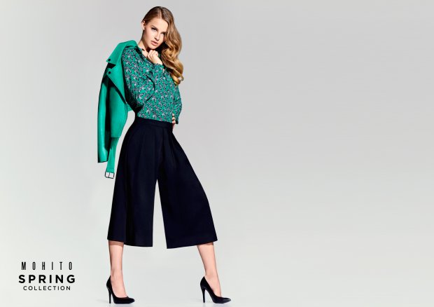 Modele z kolekcji wiosennej wyróżniają klasyczne kobiece fasony, którym charakteru dodają wyraziste zmultiplikowane printy wykorzystujące motyw jaskółek. Projekty przykuwają uwagę również dzięki zastosowanej palecie kolorystycznej, wykorzystującej soczysty zielony oraz przebojowy żółty.