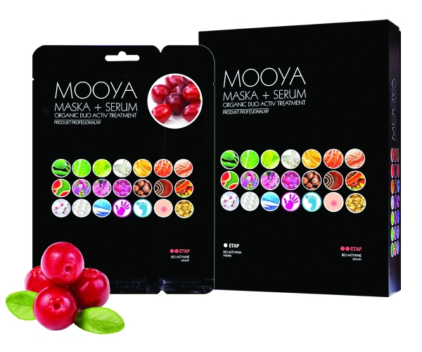 Zabieg Mooya przeznaczony jest do pielęgnacji  skóry młodej z problemem trądziku czy nierówności oraz do skóry dojrzałej w celu poprawy struktury, silnego ujędrnienia i liftingu. Zabieg składa się z dwóch etapów – pierwszym jest nałożenie maski na twarz i szyję, drugim aplikacja serum wzmacniającego działanie maski.