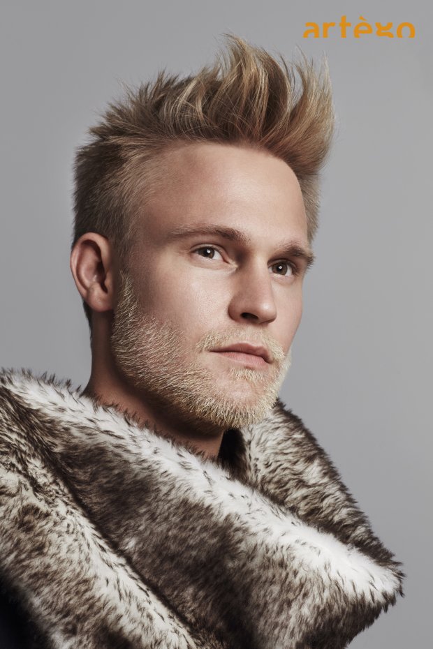 Pierwsza z nich to NORDISK. Inspirowana skandynawskimi odcieniami blondu, które nierozerwalnie kojarzą się nam z surowym i chłodnym klimatem. Obesurwując mieszkańców krainy północy, skandynawska mentalność oraz uroda stała się źródłem inspiracji dla kolekcji artego. Tak powstały odcienie blondów oraz surowe acz eleganckie stylizacje w kolekcji NORDISK. Przedstawiamy poniżej męskie strzyżenie, dopasowane do kształtu głowy, podkreślające surową męską linię twarzy. To stylizacja dla mężczyzn z klasą, ceniących klasykę i wygodę ale także chcących podkreślić swój charakter, nadając włosom wyrazistą formę. Do przygotowania stylizacji wystarczy zaaplikować na suche lub lekko wilgotne włosy gumę FAST REPLAY (100 ml, cena 38, 90 zł).