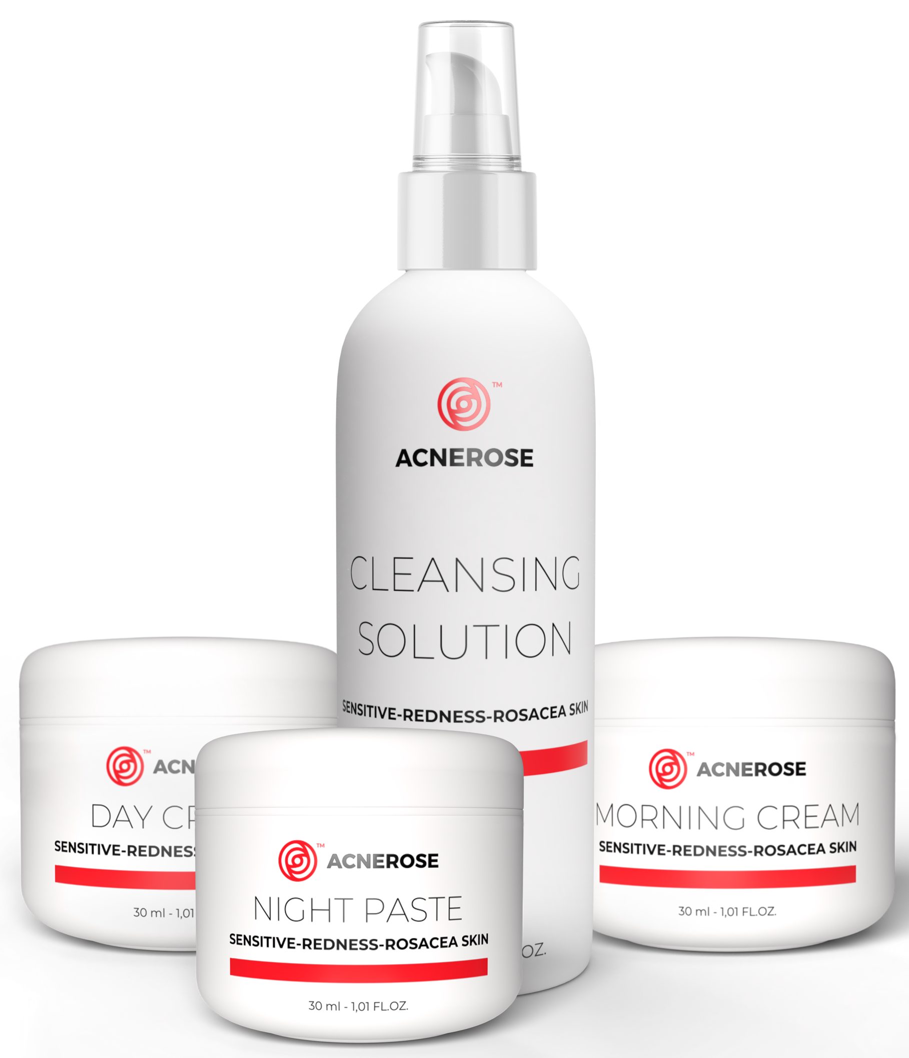 Na rynku dermokosmetyków na trądzik różowaty naturalnym składem wyróżniają się produkty z linii Acnerose. To zestaw oferujący kompleksową pielęgnację na każdym etapie pielęgnacji. Znajdziemy w nim produkt do oczyszczania – delikatny płyn oraz trzy kremy: odżywczą maść na rano, ochronny krem na dzień oraz regenerującą pastę na noc. Składy kosmetyków docierają do przyczyn odpowiedzialnych za problemy skóry naczyniowej. Uszczelniają i wzmacniają ściany naczyń krwionośnych oraz posiadają substancje antybakteryjne, przeciwzapalne i wspierające gojenie, co przekłada się na mniejszą ilość wyprysków. Delikatnie złuszczają obumarły, zalegający naskórek oraz regulują pracę gruczołów łojowych, dzięki czemu ograniczają przetłuszczanie się skóry. Pozytywne efekty stosowania dermokosmetyków Acnerose doceniaja konsumenci:
