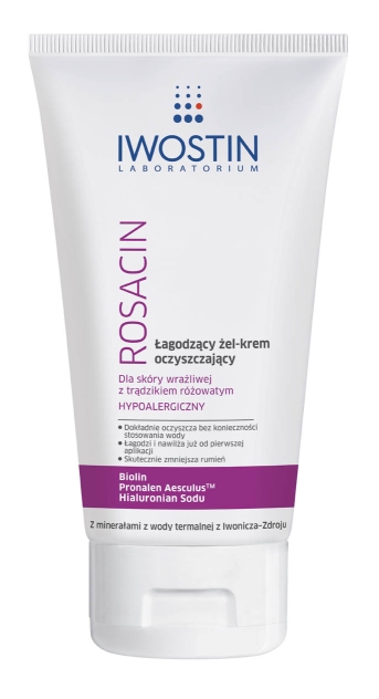 W Laboratorium Iwostin powstał Łagodzący żel-krem oczyszczający Iwostin Rosacin. Zawiera sześć składników aktywnych o działaniu łagodzącym i zmniejszającym zaczerwienienia skóry, m.in. Pronalen Aesculus HSC, Biolin, Pullulan. W jego składzie nie ma natomiast mydła, barwników ani parabenów.