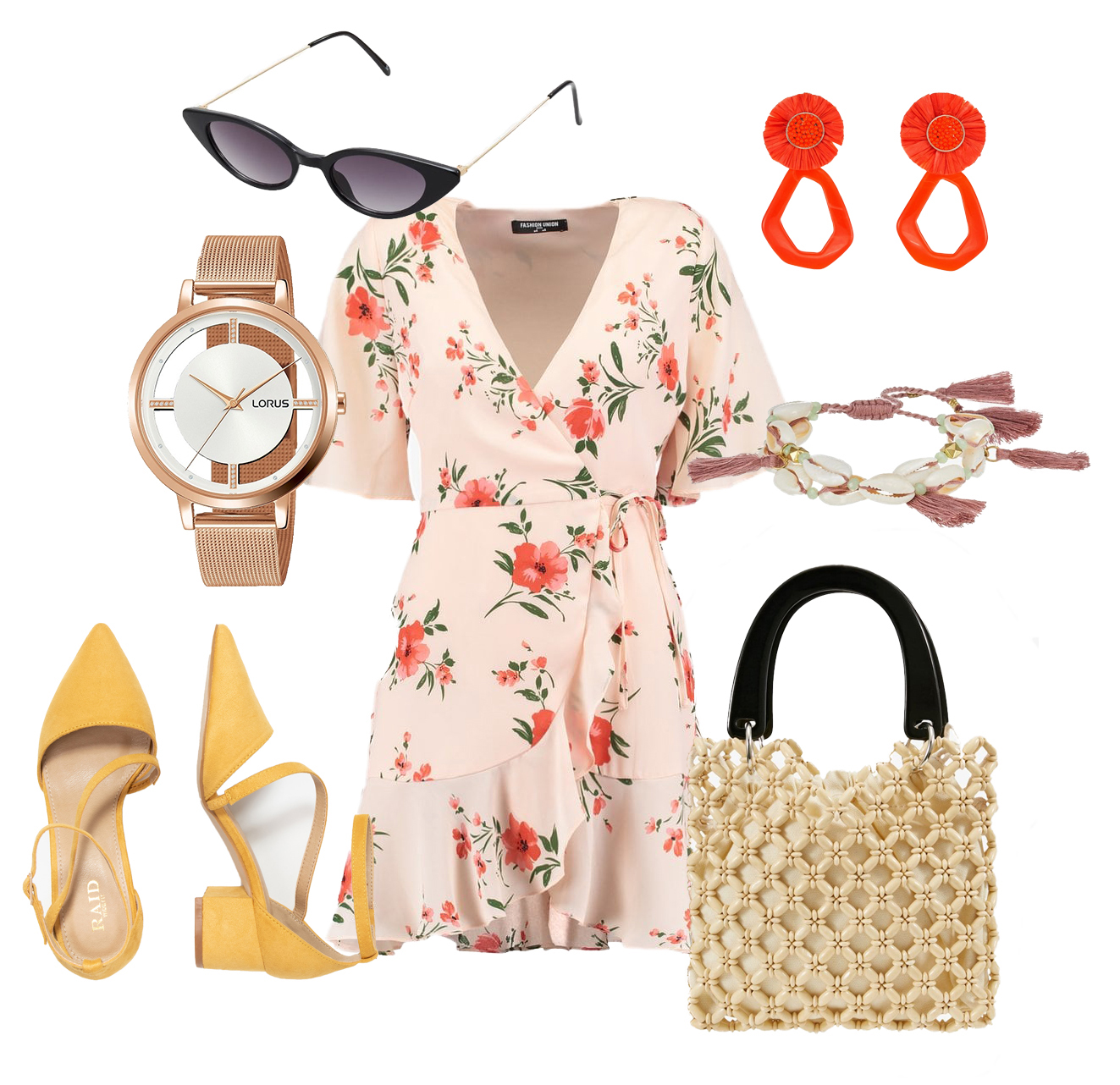 Sukienka Fuss 169 zł, zegarek Lorus 359 zł, kolczyki Liars and Lovers 69 zł, bransoletka Only 64 zł, buty Raid 149 zł, torebka Top Shop 139 zł, okulary Even and Odd 64 zł
