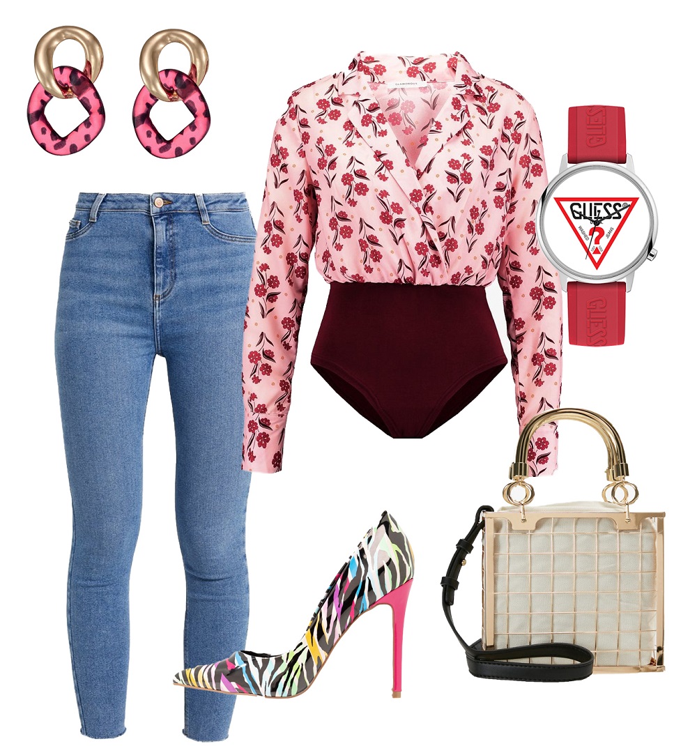 Koszula Glamorous 199 zł, spodnie New Look 139 zł, kolczyki Top Shop 64 zł, torebka Top Shop 189 zł, szpilki Faith 169 zł, zegarek Guess 369 zł
