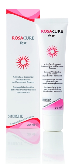Rocacure fast, emulsja-żel do twarzy o szybkim działaniu, działa łagodzącą, odświeżającą i ochronnie, zalecany do pielęgnacji skóry z trądzikiem różowatym w fazie zaostrzonej,