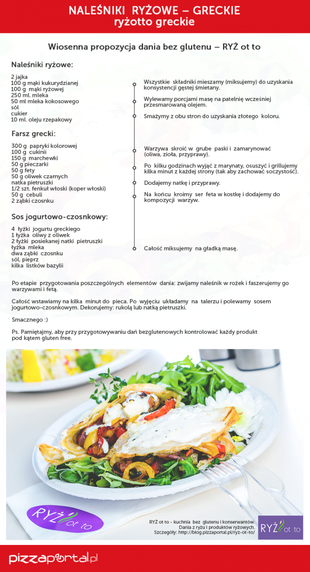 Przeglądając menu różnych restauracji dostępnych w serwisie PizzaPortal.pl możemy zdecydować się na kuchnię przygotowywaną ze świeżych składników, bez konserwantów i glutenu, jak np. bezglutenowy makaron ryżowy lub naleśniki z restauracji Ryż ot to, burgera z bułką gluten-free z lokalu Bobby Burger, a nawet pizzę czy penne bez glutenu z Trattoria w Trakcie.