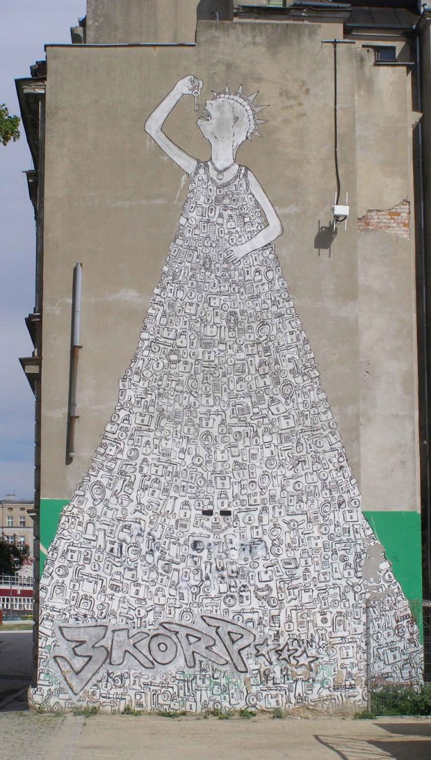 Całą boczną ścianę kamienicy na Wyspie Słodowej, czyli maleńkiej wysepce leżącej na Odrze w okolicy wrocławskiego Starego Miasta, zajmuje tajemnicza dama. Jest to biało – czarna postać ubraną w  olbrzymią suknię z kłódek i zamków, a jeden z nich nawet połyka. Być może jest to pewna metafora? Jedno jest pewne – Wrocław warto odwiedzić, aby móc podziwiać twórczość znanego na całym świecie artysty Blu, autora malowidła, który uhonorował Polską stolicę Dolnego Śląska swoim dziełem.