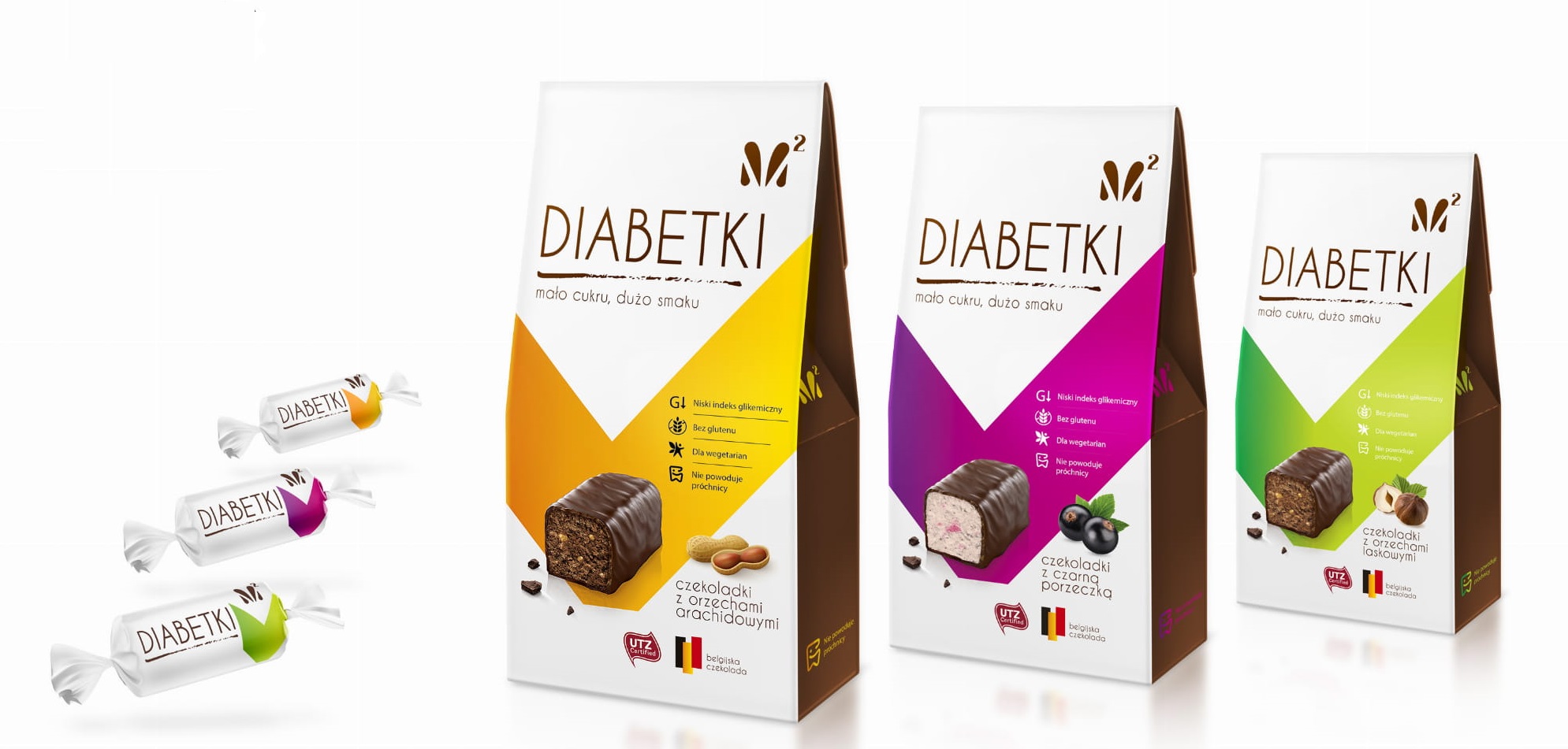 Diabetki, czekoladki bez dodatku cukru, mix smaków. Cena 24,99 zł/3 x 100 g