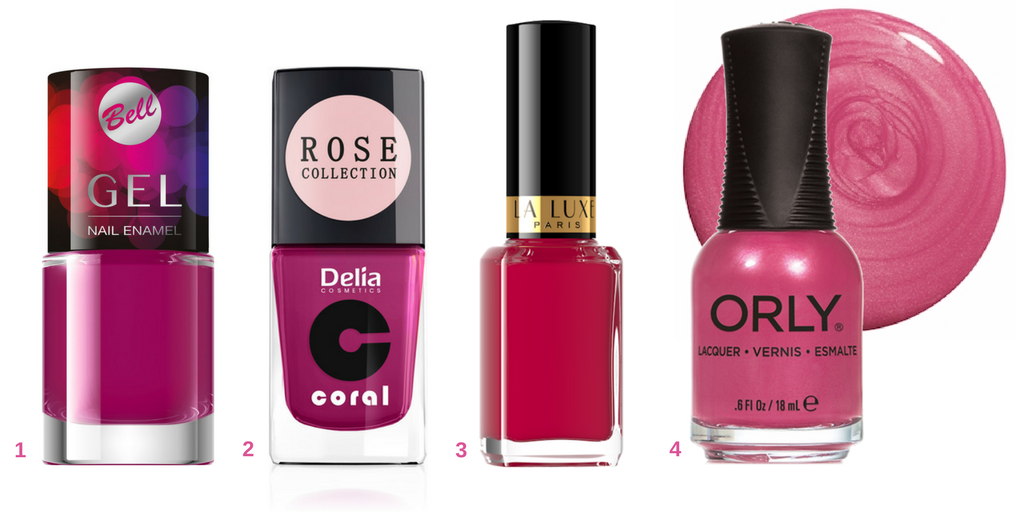 1. Bell, Gel Nail Enamel nr 4, 6,64 zł • 2. Delia, Rose Collection Coral, 8 zł • 3. La Luxe Paris, 12 zł •