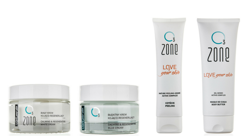Zastosowanie ozonu w kosmetologii sprawia, iż odczuwamy poprawę mikrokrążenia, a nasza skóra jest wyjątkowo dotleniona. — Kosmetyki O3 ZONE tworzone na bazie oliwy ozonowanej koją, regenerują i poprawiają kondycję naszej skóry, wpływając korzystnie zarówno na jej stan, jak też wygląd. Warto również pamiętać, że produkty ozonowe (oliwa i maść ozonowa) z naszej drugiej serii Ozonosept, wspomagają gojenie wtórnych infekcji bakteryjnych, grzybicy oraz są używane w profilaktyce stopy cukrzycowej. Pozwalają skórze szybciej powrócić do zdrowego stanu, to naprawdę działa — dodaje Edyta Brojek. Pamiętajmy, że poza zapewnieniem ochrony oraz odpowiedniej hydratacji, produkty z ozonem wykazują również działanie wspomagające przy pielęgnacji skóry z problemami grzybiczymi czy wtórnymi infekcjami bakteryjnymi (np. trądzik). Są dobrym rozwiązaniem na bardzo powszechne dziś problemy alergiczne – np. atopowe zapalenie skóry. — Kosmetyki z oliwą ozonowaną można stosować do codziennej pielęgnacji oraz jako bazę pod makijaż. W zestawach kosmetyków O3 ZONE znaleźć można zarówno krem dla skóry z tendencją do przetłuszczania, krem dla skóry suchej, masło do ciała, jak też czyścik wygładzający. Wybór zależy od potrzeb i rodzaju cery, jednak z pewnością każda z Pań znajdzie coś dla siebie — zapewnia Edyta Brojek.