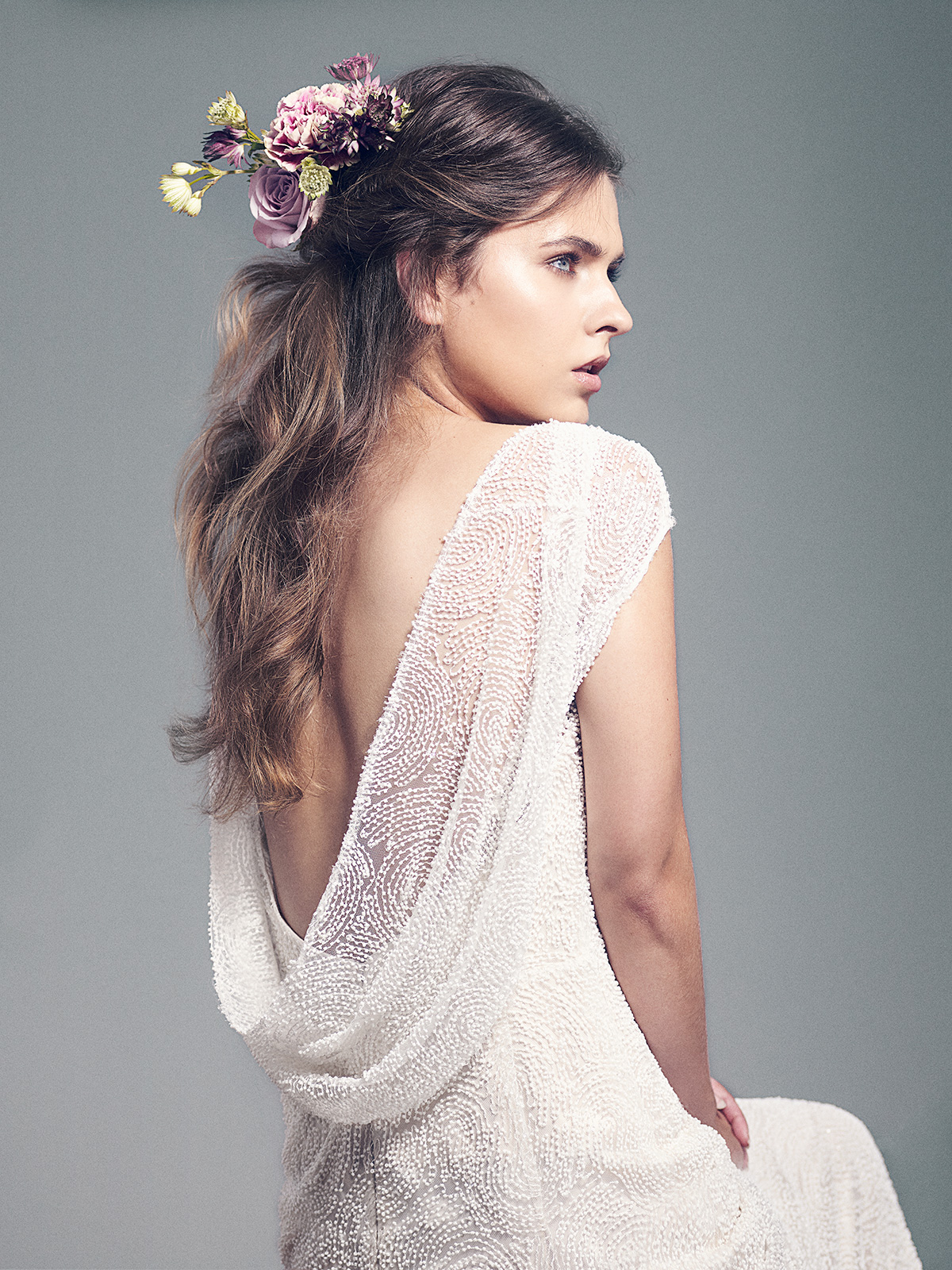 Styl bohemy to jeden z wiodących trendów od kilku sezonów. Jest to nonszalancki, ale jednocześnie niewymuszony i maksymalnie kobiecy look. W ślubnych stylizacjach marka proponuje rozpuszczone lub delikatnie podpięte, lekko zmierzwione włosy. Powinny być delikatnie pofalowane, nadając fryzurze modny i niezwykle naturalny wygląd. Aby uzyskać taki efekt  na włosy nałóż produkt zwiększający ich objętość np. Anti.Gravity. To pozwoli zachować blask i nadać kosmykom naturalną teksturę. Tego typu fryzury dobrze prezentują się w towarzystwie kwiatów.