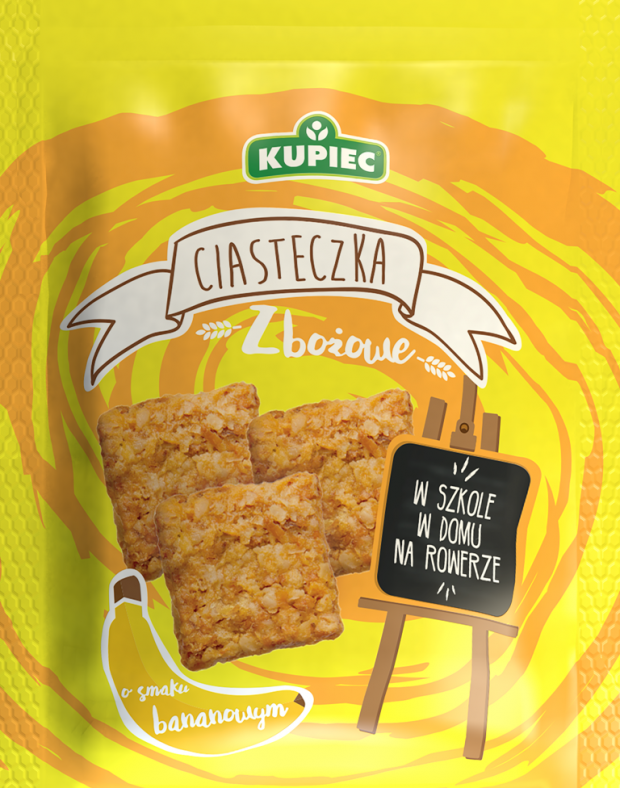 Nowość! Ciasteczka zbożowe KUPIEC o smaku bananowym, jabłkowym i truskawkowym w pakietach po 5 saszetek to idealne rozwiązanie, zawsze wtedy, gdy planujemy spotkanie z najbliższymi, lub kiedy robimy zakupy na cały tydzień. Kruche ciasteczka zbożowe to zdrowa i smaczna przekąska.