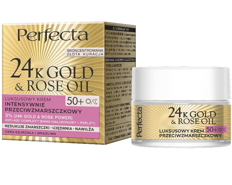 PERFECTA 24K GOLD & ROSE OIL LUKSUSOWY KREM INTENSYWNIE PRZECIWZMARSZCZKOWY NA DZIEŃ I NA NOC 50+