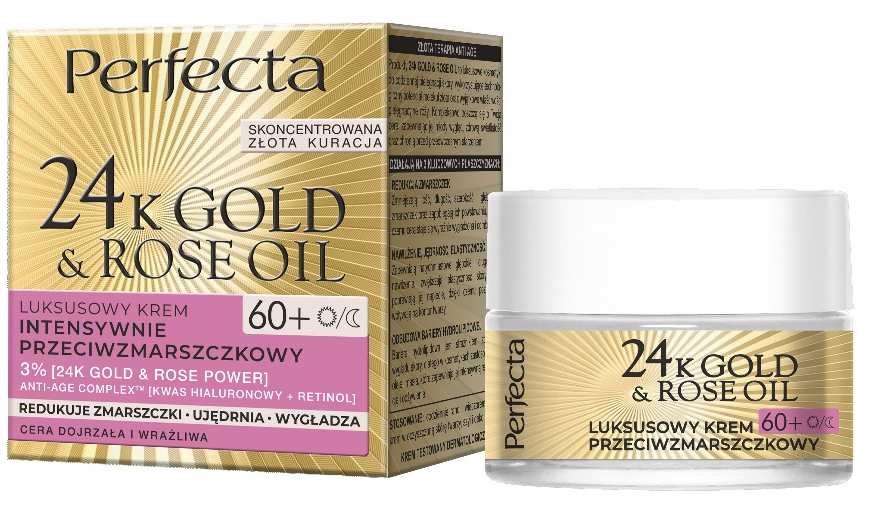 PERFECTA 24K GOLD & ROSE OIL LUKSUSOWY KREM INTENSYWNIE PRZECIWZMARSZCZKOWY NA DZIEŃ I NA NOC 60+