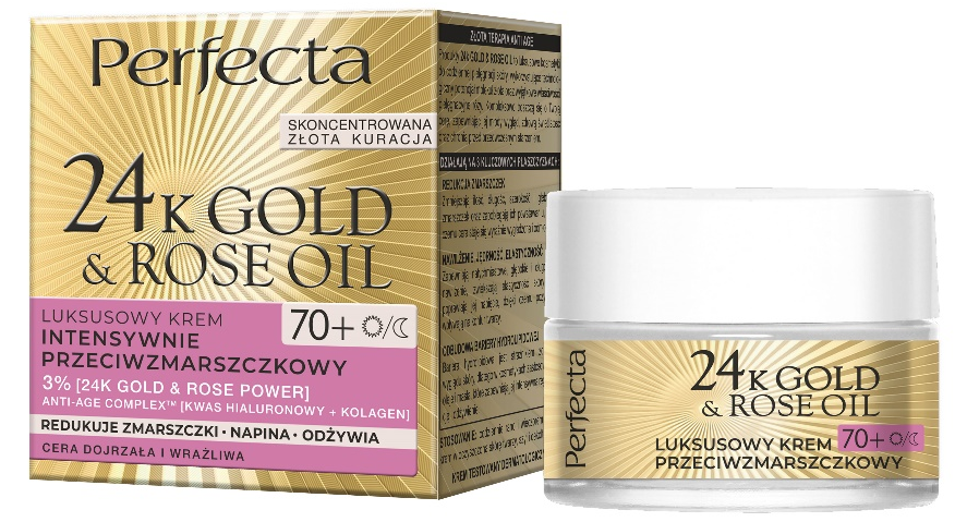 PERFECTA 24K GOLD & ROSE OIL LUKSUSOWY KREM INTENSYWNIE PRZECIWZMARSZCZKOWY NA DZIEŃ I NA NOC 70+
