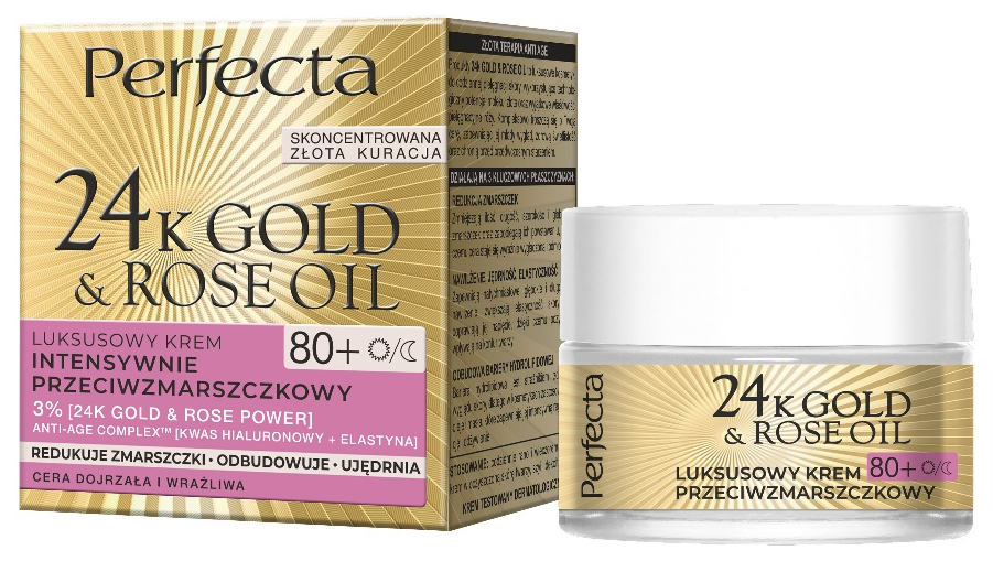 PERFECTA 24K GOLD & ROSE OIL LUKSUSOWY KREM INTENSYWNIE PRZECIWZMARSZCZKOWY NA DZIEŃ I NA NOC 80+