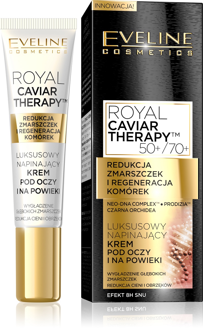 Luksusowy napinający krem pod oczy i na powieki z serii Royal Caviar Therapy Eveline Cosmetics – redukcja zmarszczek i regeneracja komórek