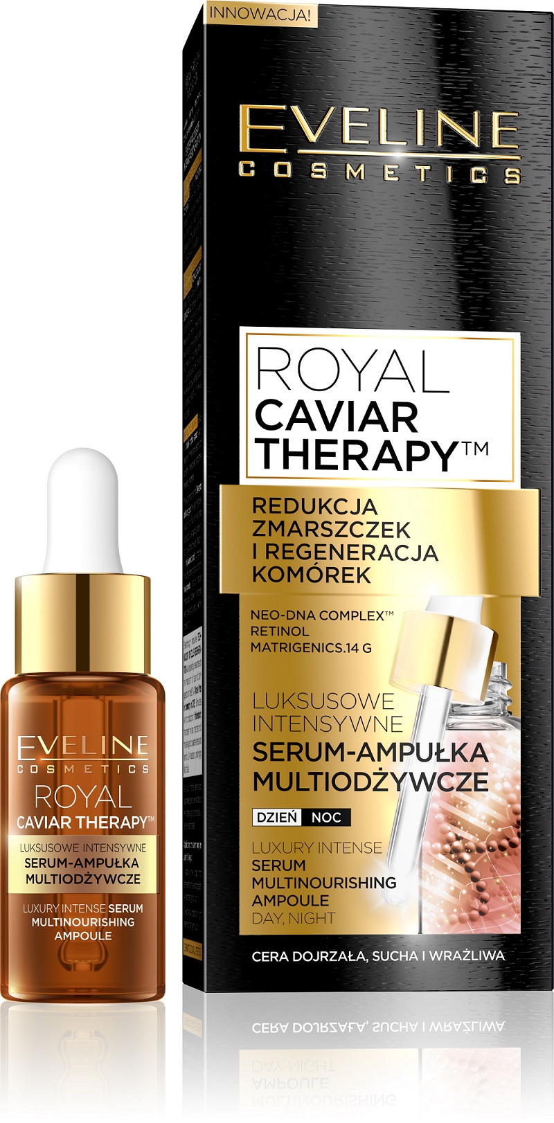 Luksusowe intensywne serum-ampułka multiodżywcze z serii Royal Caviar Therapy Eveline Cosmetics – redukcja zmarszczek i regeneracja komórek