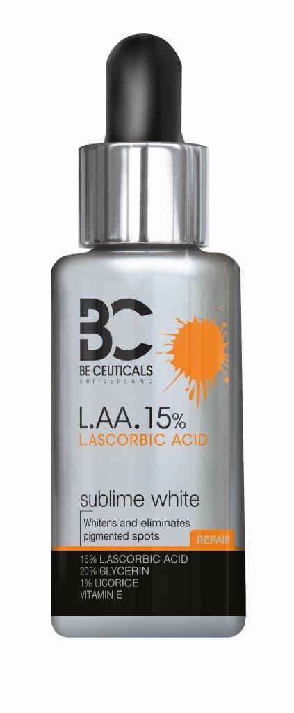 Zawiera najwyższe dostępne stężenie witaminy C. BE CEUTICALS L.A.A. 25% CUDOWNA SKÓRA pomaga zwalczać szkodliwe działanie wolnych rodników oraz zapobiega uszkodzeniom skóry. Zawarty w produkcie kwas askorbinowy stymuluje produkcję kolagenu, wzmacnia naczynia krwionośne i hamuje proces melanogenezy. Dzięki połączeniu z kwasem liponowym o działaniu detoksykującym, oczyszcza skórę ze szkodliwych substancji i toksyn. Zmarszczki i plamy pigmentacyjne są mniej widoczne. Skóra jest jasna, promienna i młodsza.