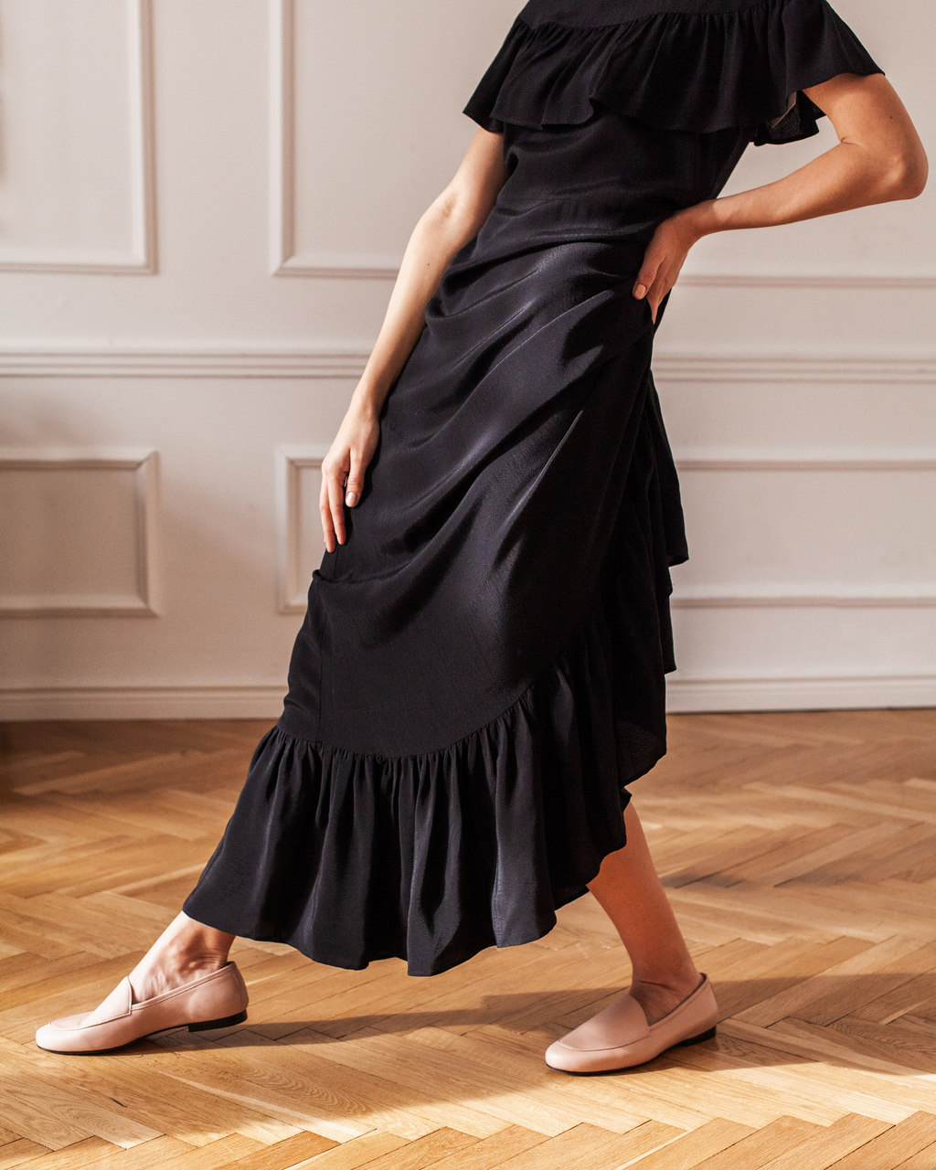 Do produkcji butów użyto luksusowej, włoskiej skóry z odpowiedzialnego źródła. Marka współpracuje jedynie z dostawcami, którzy kierują się etyką. W odpowiedzi na prośby klientek od nowego sezonu marka poszerzyła ofertę rozmiarów. Dzięki temu jeszcze więcej kobiet może nosić loafery sept. Pojawią się dodatkowe połówki i skrajne rozmiary 35 i 42.