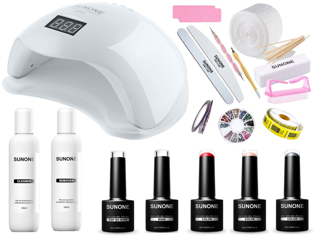 Marka SUNONE wychodząc naprzeciw oczekiwaniom swoich Klientów stworzyła niesamowity w 100% kompletny zestaw najwyższej jakości produktów do hybryd. Już dziś możesz stworzyć trwałą i niepowtarzalną hybrydę z pierwszych stron gazet bazując na produktach tej marki! Perfekcyjny manicure i pedicure przez 3 tygodnie? Z produktami SUNONE marzenie o trwałej stylizacji spełnia się.