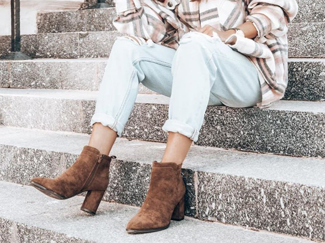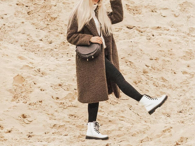 1. spodnie włożone do butów – ten sposób sprawdza się przede wszystkim w przypadku botków o długości do lub za kostkę, np. workerów, traperów czy sztybletów. Buty zakrywające kostkę dobrze jest odpowiednio wyeksponować w swojej stylizacji, dlatego rurki lub spodnie z innego materiału najkorzystniej jest włożyć do butów. Taki sposób noszenia to również doskonały patent na botki z szeroką cholewką.