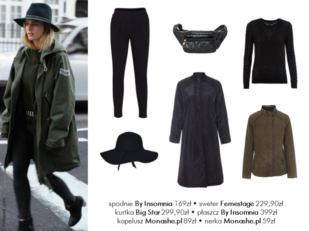 Styl militarny co jakiś czas powraca, w coraz to innych wcieleniach. Uwielbiają go wielcy projektanci i stale prześcigają się w nowych interpretacjach militarnych looków. Styl inspirowany wojskowymi mundurami to spodnie z kieszeniami na nogawkach, marynarki z pagonami, duża ilość ozdobnych guzików i ciężkie dodatki. Wszystko w kolorach ziemi, ale przede wszystkim w odcieniach zieleni i brązu. Marynarka o sportowym kroju świetnie sprawdzi się w codziennych stylizacjach. To idealne rozwiązanie dla kobiet odważnych, które chcą się czuć wygodnie, ale jednocześnie bardzo seksownie i kobieco. Prawdziwą ulubienicą tego stylu jest rockowa Cara Delevingne. Do stworzenia militarnej stylizacji możemy wykorzystać zarówno spodnie, jak i spódnicę czy sukienkę. Zobaczcie nasze propozycje!