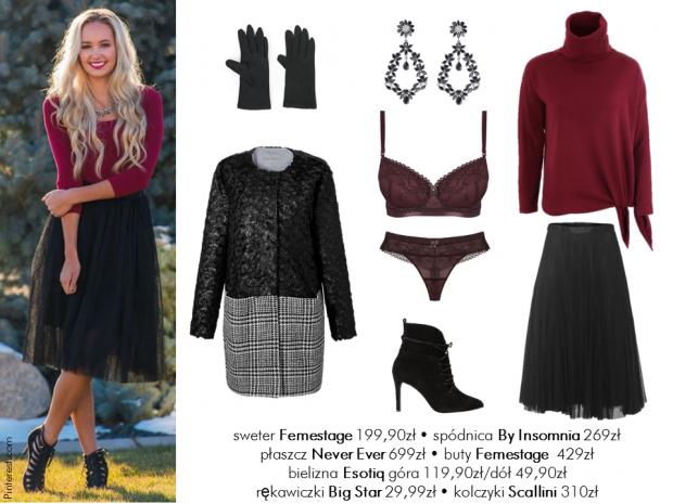 Najważniejsze, żeby nie zapomnieć o złotych lub srebrnych dodatkach. Modne w tym sezonie golfy idealnie sprawdzą się w połączeniu z tiulową spódnicą i szpilkami. Dla bardziej odważnych polecamy koronki, cekiny i skórę. W Święta nie może zabraknąć także kolorów typowych dla końca grudnia – czerwieni i zieleni. Torby, błyszczyki czy lakiery do paznokci będą idealnym dopełnieniem naszych stylizacji.
