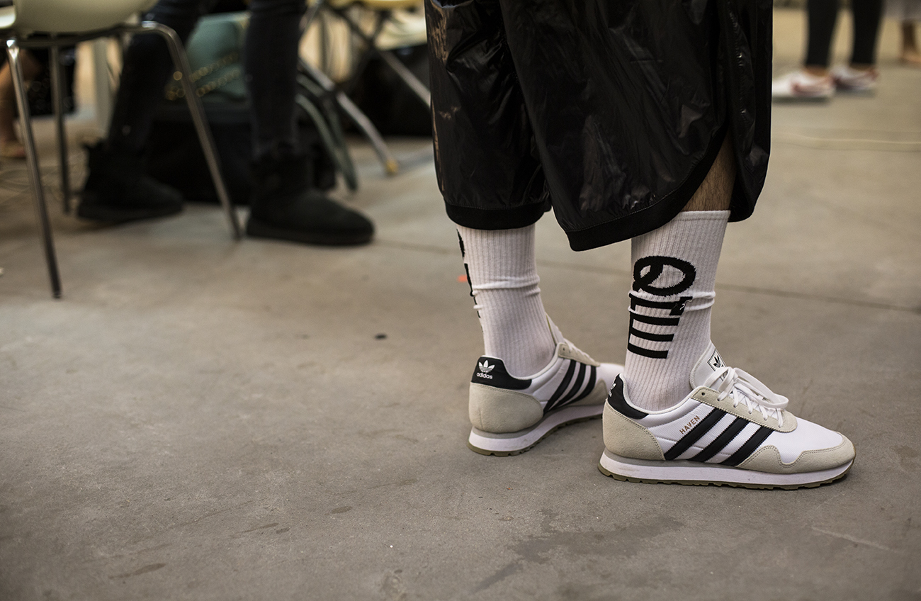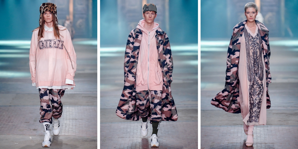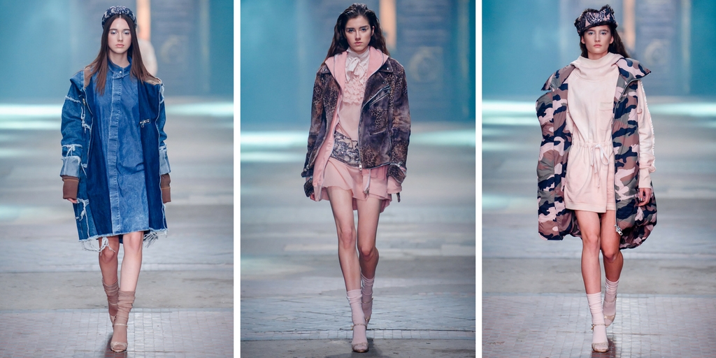 Najnowsza kolekcja Roberta Kupisza utrzymana jest w militarnej kolorystyce. Przeważają w niej odcienie khaki, przełamane pudrowym różem. Tkaniny, które dominują to sztruks, jedwab i sztuczne futro, a także charakterystyczne dla marki Qπш Robert Kupisz ręcznie farbowana bawełna, welur oraz dekatyzowany jeans. Mocnym akcentem kolekcji jest motyw moro w zaskakującym połączeniu różu i khaki, a także cekiny w tych odcieniach. Również w tych barwach, specjalnie do pokazu, stworzone zostały skarpety marki Gatta. Znany już fanom projektanta fason klasycznych, sportowych podkolanówek, uzupełnionych dużym białym logotypem Qπш, po raz kolejny stanowił znaczący, niezwykle widoczny i charakterystyczny element stylizacji pokazu. Looki modeli dodatkowo uzupełniły dostępne w ofercie marki Gatta białe i czarne skarpety, wpisujące się w stylistykę projektów Roberta Kupisza.