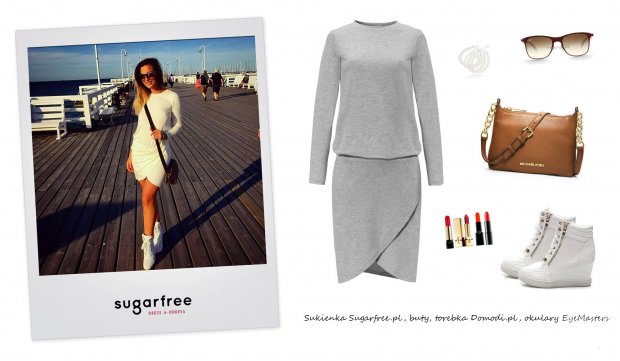 Ostatnia propozycja to szarości z odrobiną szaleństwa i sportu. @mirabelove proponuje sukienkę w połączeniu z modnymi w tym sezonie superstarami i delikatnymi dodatkami, my do tej stylizacji dodalibyśmy trochę kolory. Co powiecie na mocny akcent kolorystyczny i plastikowy naszyjnik? Całość prezentuje się iście wakacyjnie. Sukienki znajdziesz na Sugarfree.pl