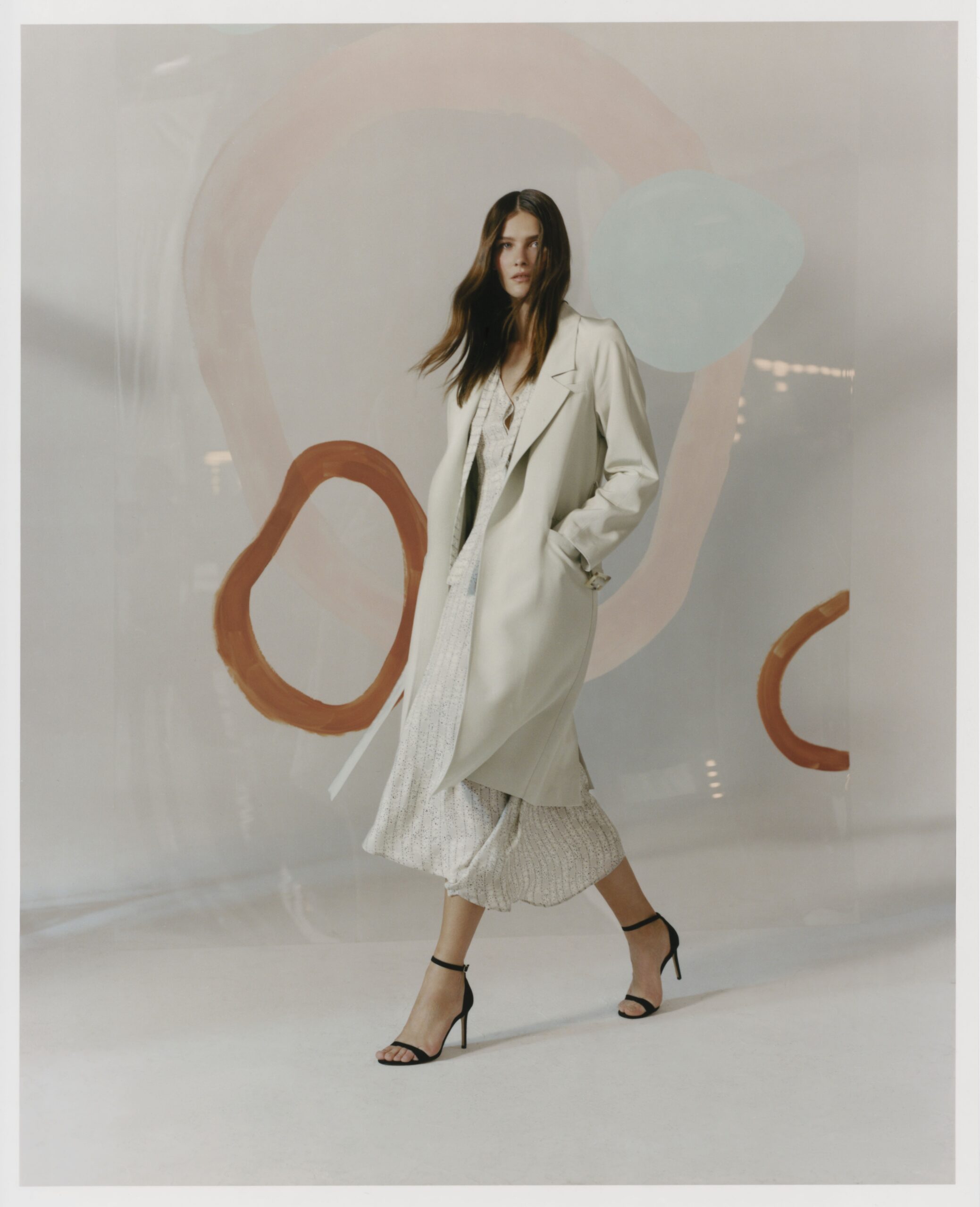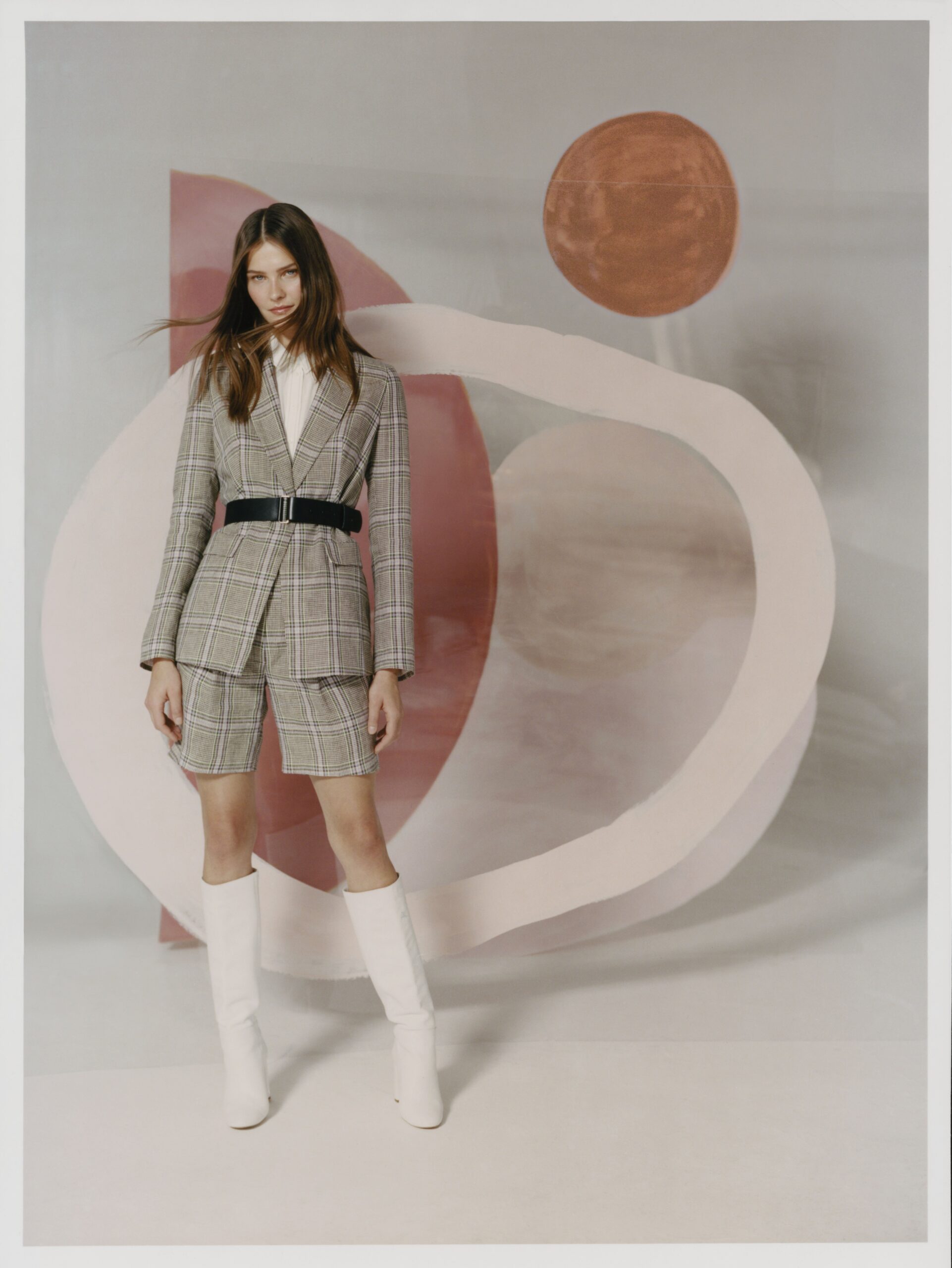 Delikatna na zewnątrz, ale pewna siebie w środku, modelka uosabia dwie skrajności. Pozując na tle pastelowych aranżacji gra pierwsze skrzypce, podkreślając kobiecość sylwetek na sezon wiosna-lato 2019. Nowa kolekcja Patrizia Aryton, podobnie jak mariaż nowoczesnej kolekcji z analogową fotografią, łączy nieoczywiste kolory i printy zastosowane na klasycznych, ale zdecydowanych konstrukcjach. Wełniane, kaszmirowe płaszcze, które są domeną marki z Kaszub, ustępują perfekcyjnie skrojonym marynarkom, które z krótkimi spodenkami tworzą nowoczesny duet. Totallooki w kolorze kości słoniowej są kwintesencją dziewczęcej elegancji. Na kobiecych kształtach zmysłowo układają się długie, jedwabne sukienki z falbanami. Błękitne spodnie ze sztruksu w drobne prążki i krótka kurtka dżinsowa uzupełniają kolekcję o młodzieżowe elementy. Wśród zróżnicowanych propozycji ukryte są cztery główne linie zaprojektowane przez zespół pod okiem dyrektor kreatywnej Patrycji Cierockiej-Szumichory.