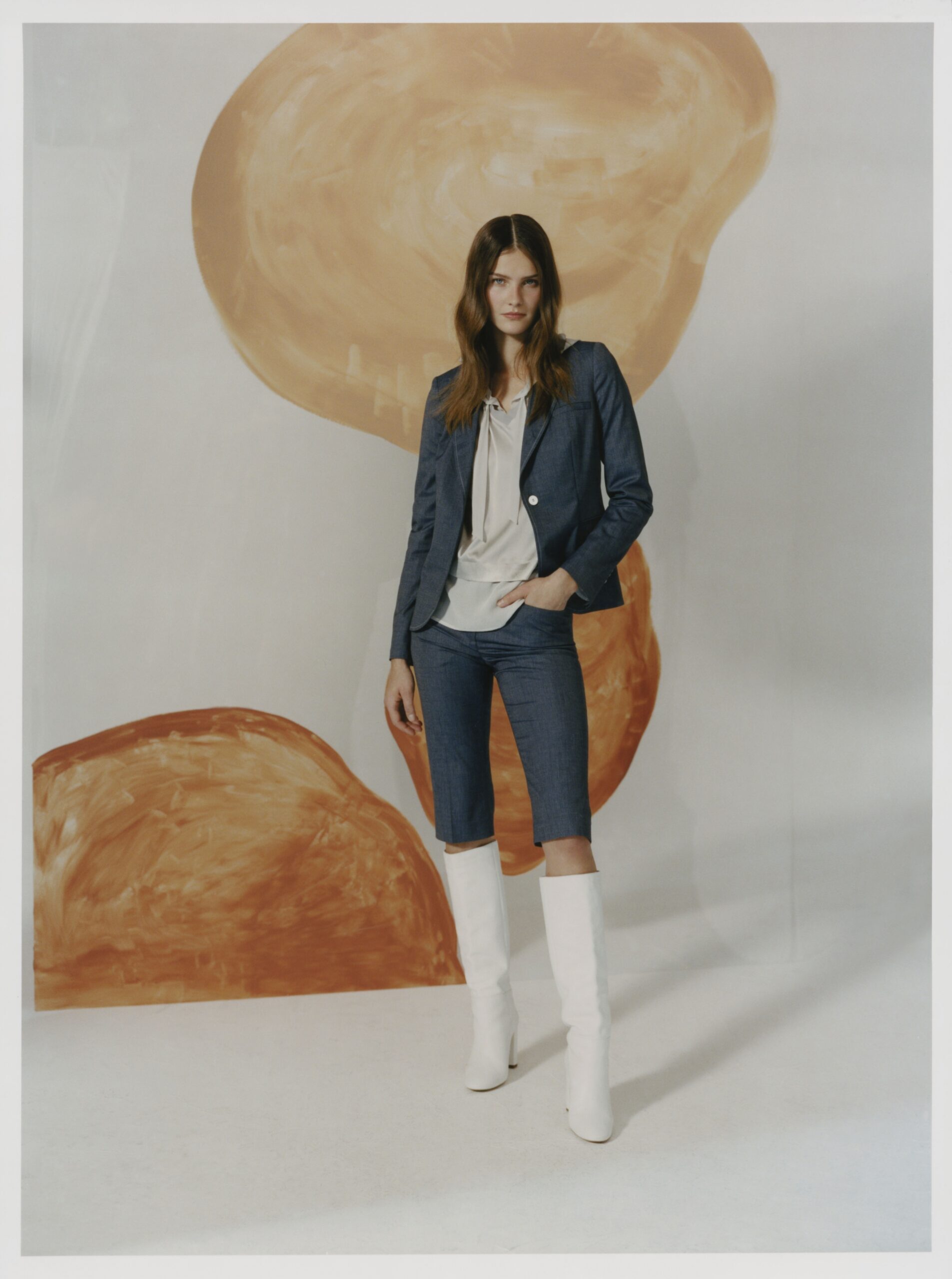 Linia, która czerpie inspiracje ze stylu marine, ale w zdecydowanie mniej oczywistej formie. Tym razem ten styl pojawi się już na początku sezonu, a nie w pełni lata. Uzupełnieniem granatu nie jest oczywista czerwień, ale kolory wynikające z masy perłowej – zgaszony błękit, turkus i lila. Paski pojawiają się w kolekcji, ale nie w wydaniu casualowego sweterka; tylko wypracowanego garnituru o mocnej, nieco męskiej formie. Guziki również nawiązują do stylu marine – są wykonane z masy perłowej lub perły, dla kontrastu w niektórych modelach pojawiają się nowoczesne metalowe napy. Ta linia to esencja power dressing.
