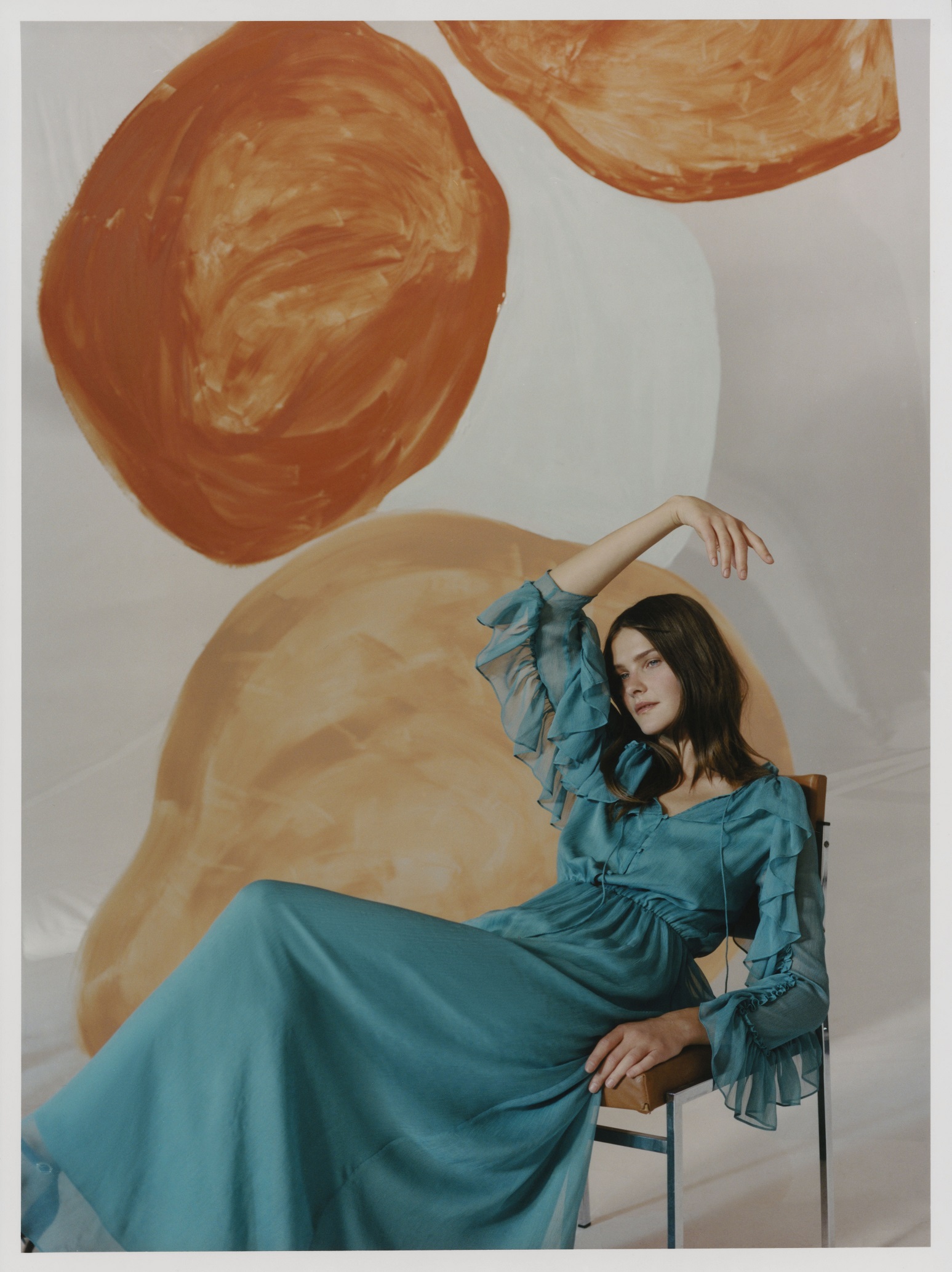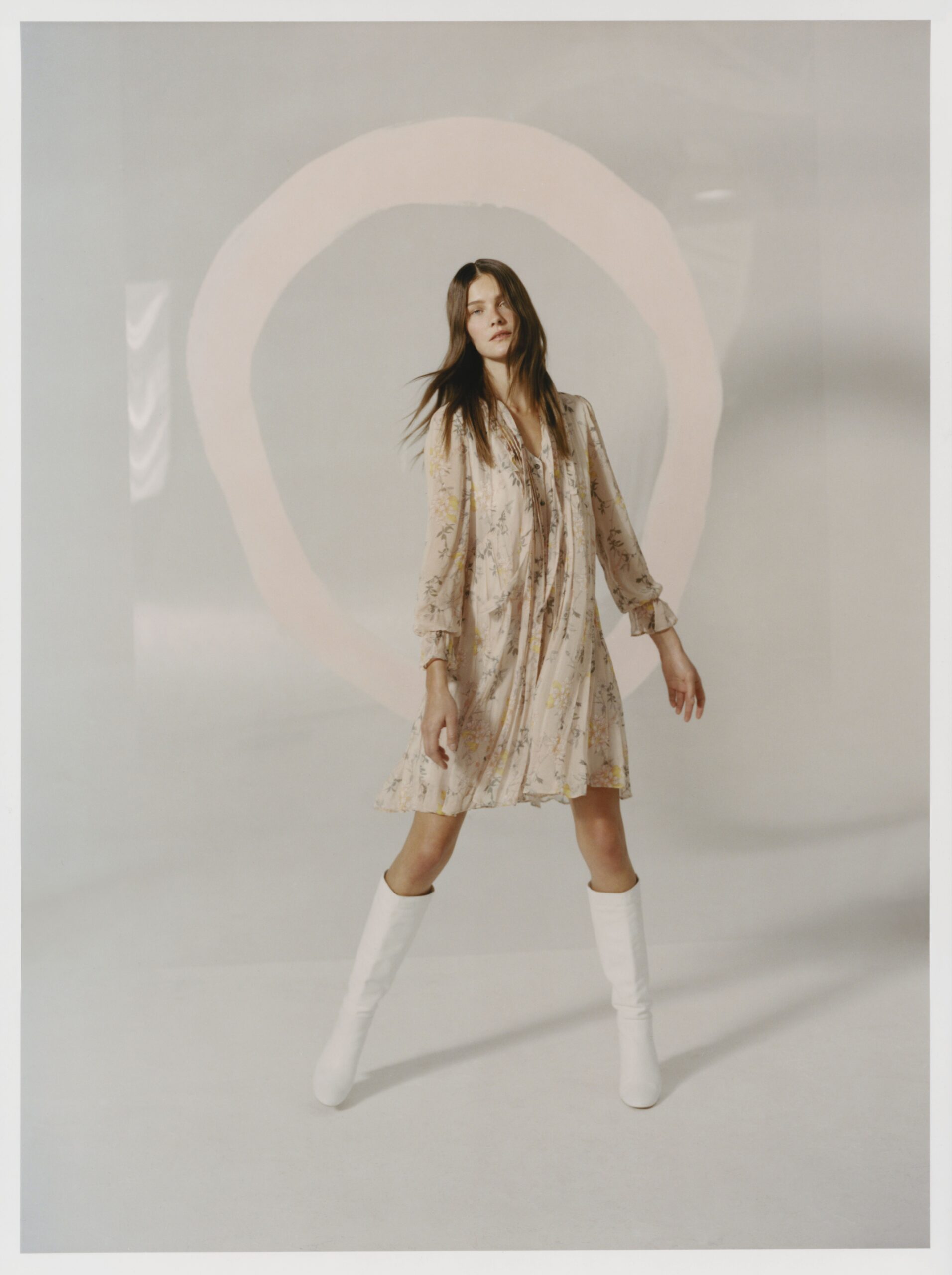 Delikatna na zewnątrz, ale pewna siebie w środku, modelka uosabia dwie skrajności. Pozując na tle pastelowych aranżacji gra pierwsze skrzypce, podkreślając kobiecość sylwetek na sezon wiosna-lato 2019. Nowa kolekcja Patrizia Aryton, podobnie jak mariaż nowoczesnej kolekcji z analogową fotografią, łączy nieoczywiste kolory i printy zastosowane na klasycznych, ale zdecydowanych konstrukcjach. Wełniane, kaszmirowe płaszcze, które są domeną marki z Kaszub, ustępują perfekcyjnie skrojonym marynarkom, które z krótkimi spodenkami tworzą nowoczesny duet. Totallooki w kolorze kości słoniowej są kwintesencją dziewczęcej elegancji. Na kobiecych kształtach zmysłowo układają się długie, jedwabne sukienki z falbanami. Błękitne spodnie ze sztruksu w drobne prążki i krótka kurtka dżinsowa uzupełniają kolekcję o młodzieżowe elementy. Wśród zróżnicowanych propozycji ukryte są cztery główne linie zaprojektowane przez zespół pod okiem dyrektor kreatywnej Patrycji Cierockiej-Szumichory.