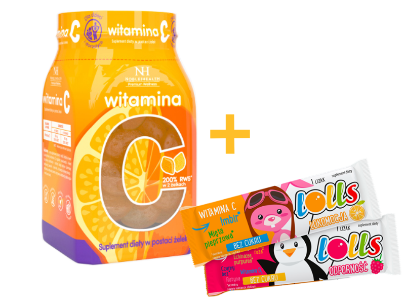 Witamina C Noble Health + Lizaki LOLLS na odporność 2 szt.