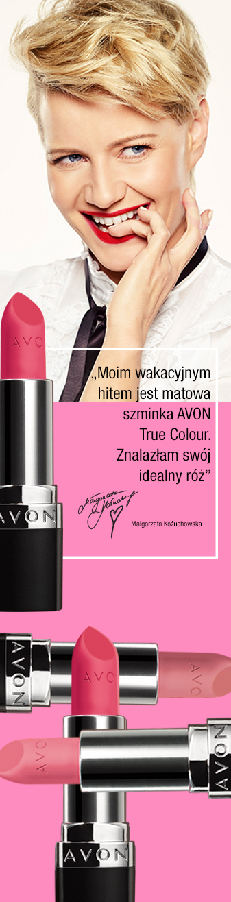 Róż to najbardziej kobiecy z kolorów, który pasuje niemal każdej z nas, bez względu na wiek czy typ urody. Tego lata podkreślamy nim już nie tylko policzki, ale także usta, stawiając na wciąż modne matowe wykończenie. Róż niejedno ma imię, ale każdy jego odcień odświeży, ożywi i jednocześnie zapewni twarzy subtelny efekt rozświetlenia. Właśnie dlatego do kultowej linii matowych szminek AVON True Colour dołączyły 3 nowe różowe odcienie! Spośród nich Małgorzata Kożuchowska wybrała swój idealny – Rose Awakening. „To mój wakacyjny must have! Bardzo lubię matowe usta w zdecydowanym kolorze. Szminki AVON True Colour to nie tylko ładne odcienie, ale także kosmetyki pielęgnacyjne. To mnie przekonuje i już z doświadczenia wiem, że świetnie sprawdzają się w czasie wakacji” – zachwyca się Małgosia.