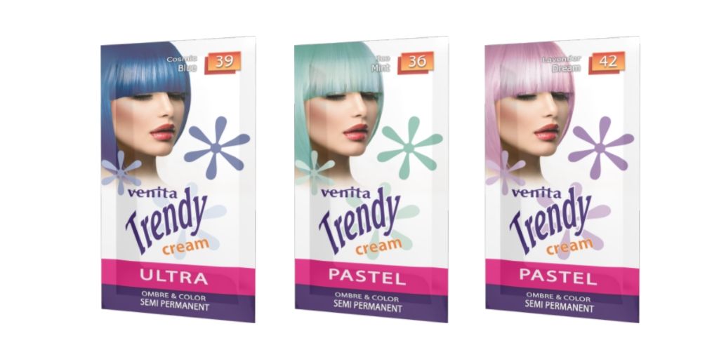 Najważniejsze cechy Trendy Cream w saszetce: koloryzacja półtrwała, 0% amoniaku, utleniaczy, PPD, proste stosowanie. Kolory pastelowe łatwe do zmycia przez co bezpieczne do wakacyjnej koloryzacji włosów.